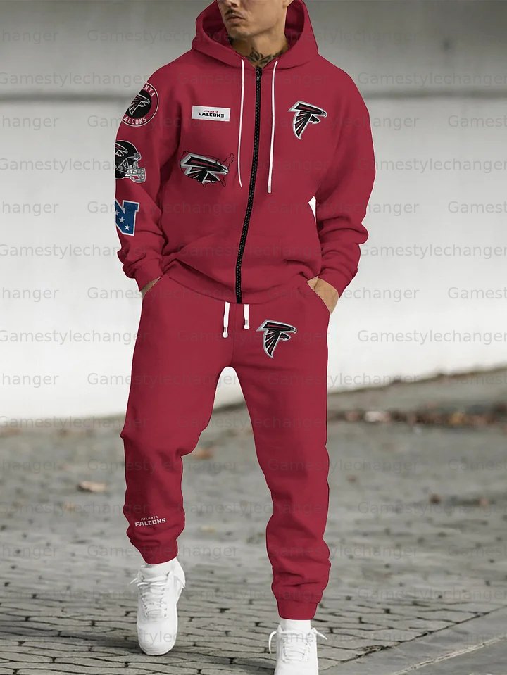 (Fleece-Lined Zip-up Hoodie)Atlanta Falcons Hoodie & Pants 2 Pieces Set