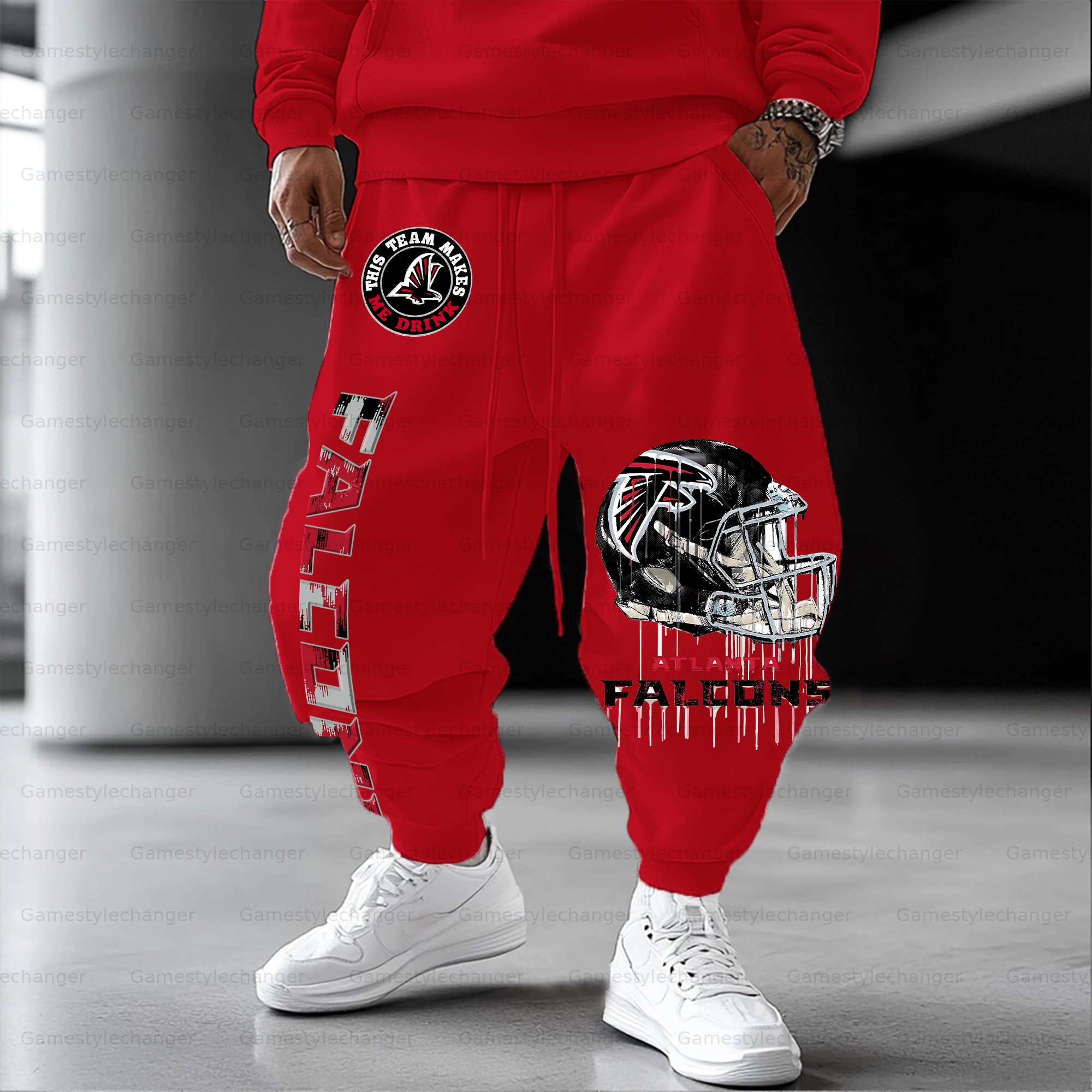 (Fleece-Lined Hoodie) Atlanta Falcons Hoodie & Pants 2 Pieces Set