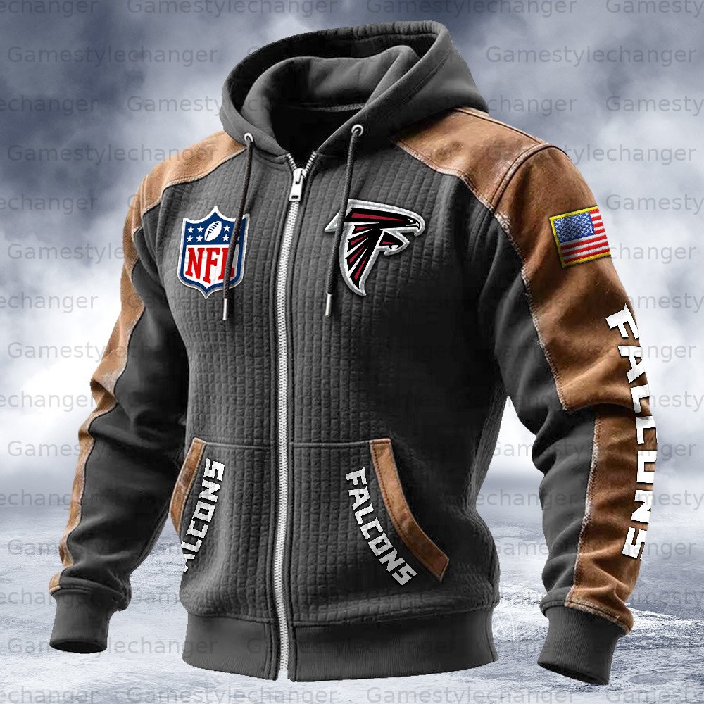 (Fleece-Lined Zip-up Hoodie)Atlanta Falcons Zip-up Hoodie & Pants 2 Pieces Set