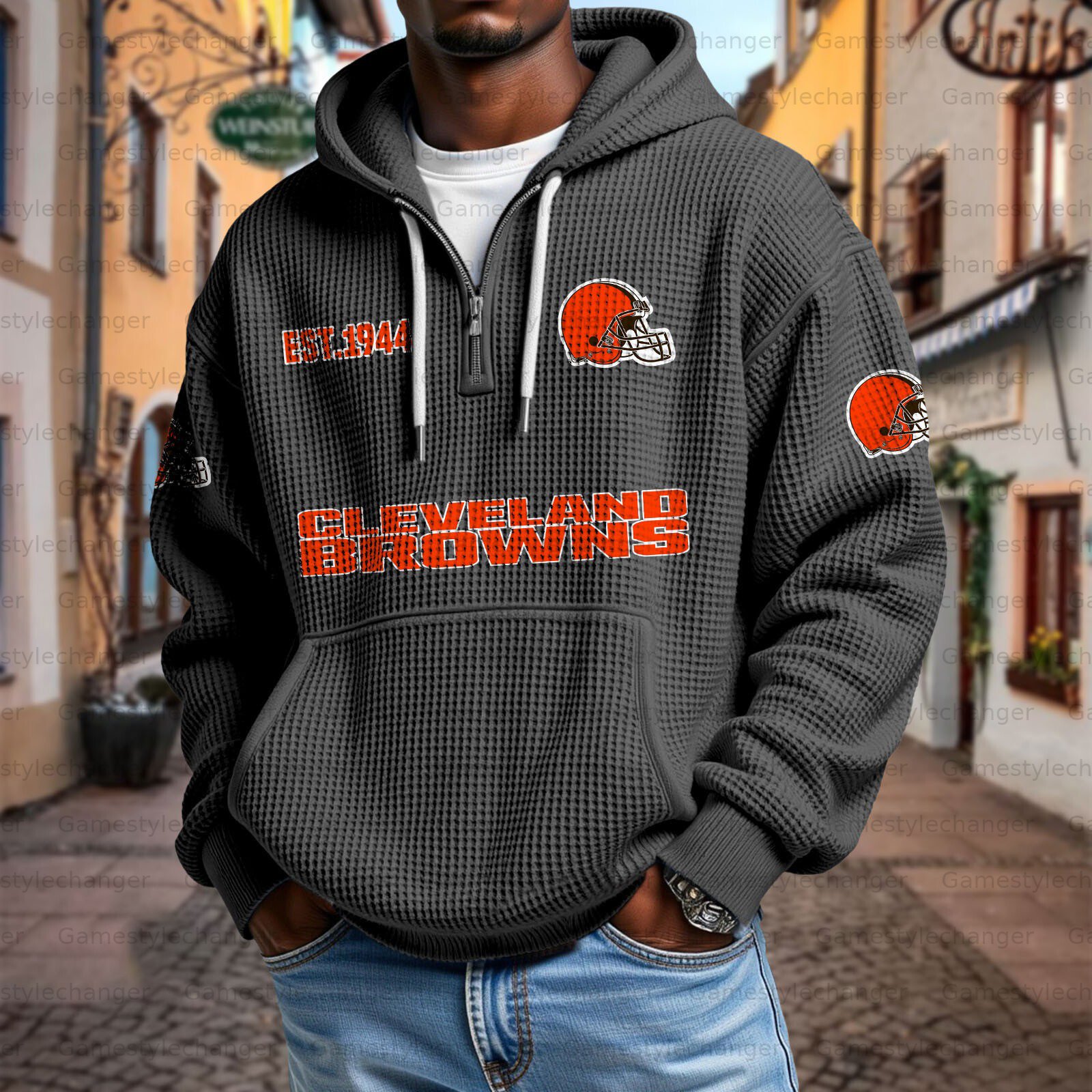 Unisex "Cleveland Browns" Graphic Streetwear Vintage Waffle Fabric hoodie
