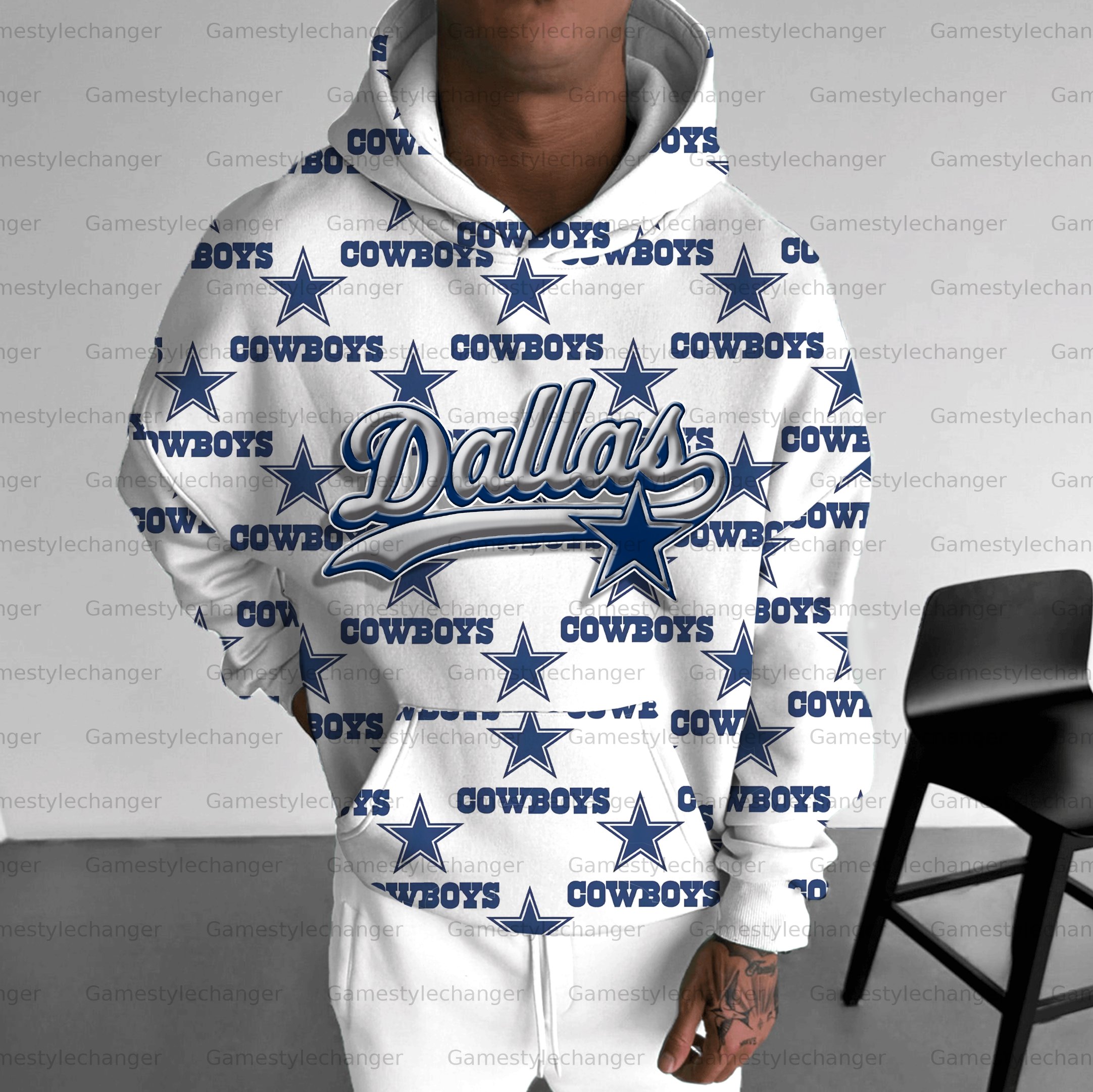 (Fleece-Lined Hoodie) Dallas Cowboys 3D Printed Pullover Fleece-Lined Hoodie And Sweatpant 2pcs Tracksuits