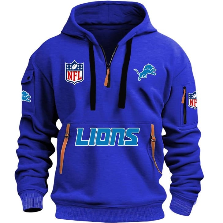 Unisex "Detroit Lions" Graphic Streetwear Vintage HALF ZIPPER Hoodie