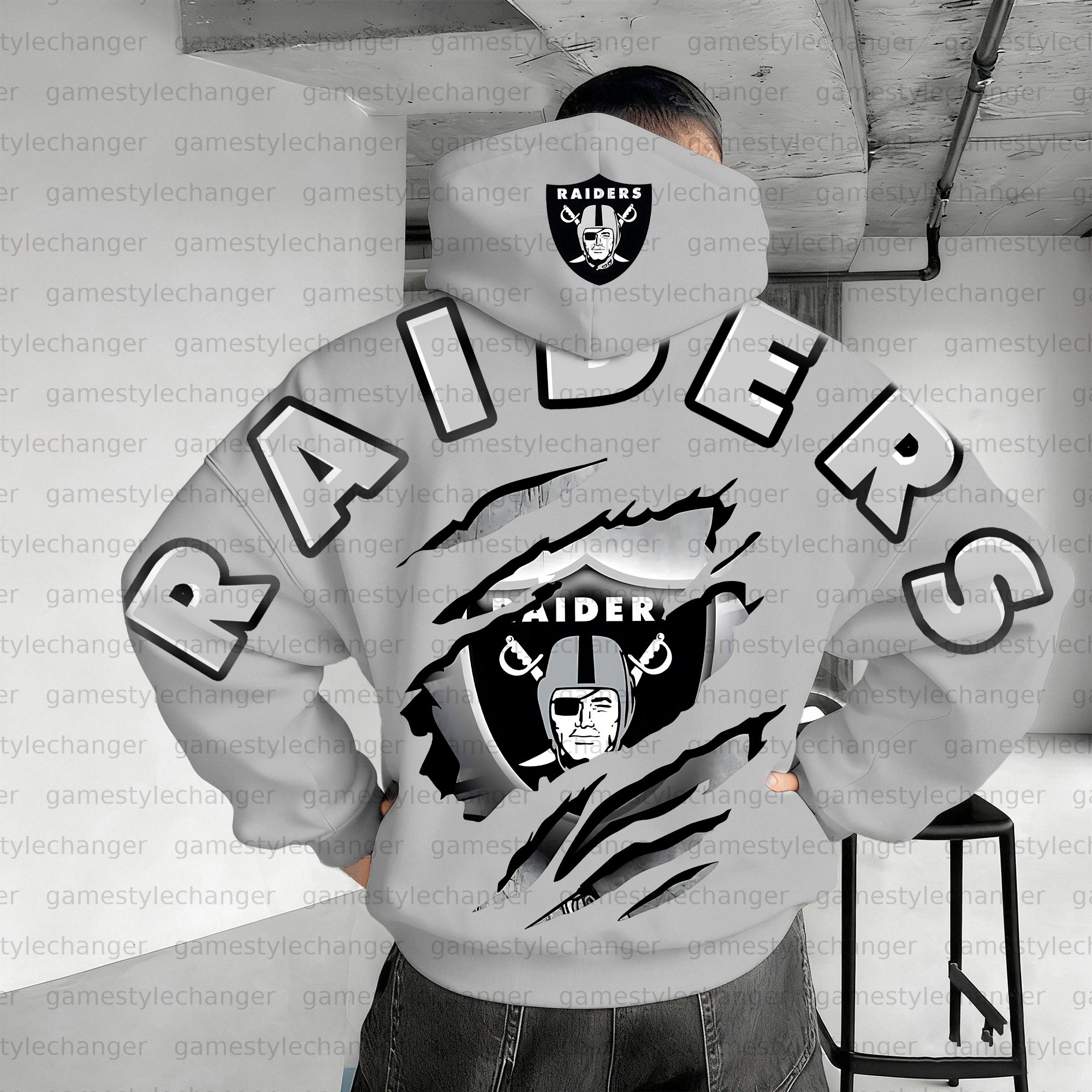 Las Vegas Raiders UNISEX RUGBY CHAMPIONSHIP TEAM LOGO PRINT OVERSIZED CASUAL HOODIE