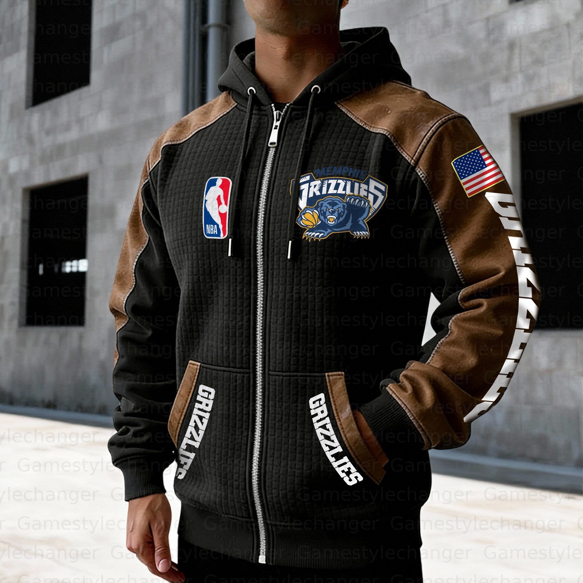 Memphis Grizzlies Contrasting Shoulder Panels Hooded Zip-Up Jacket