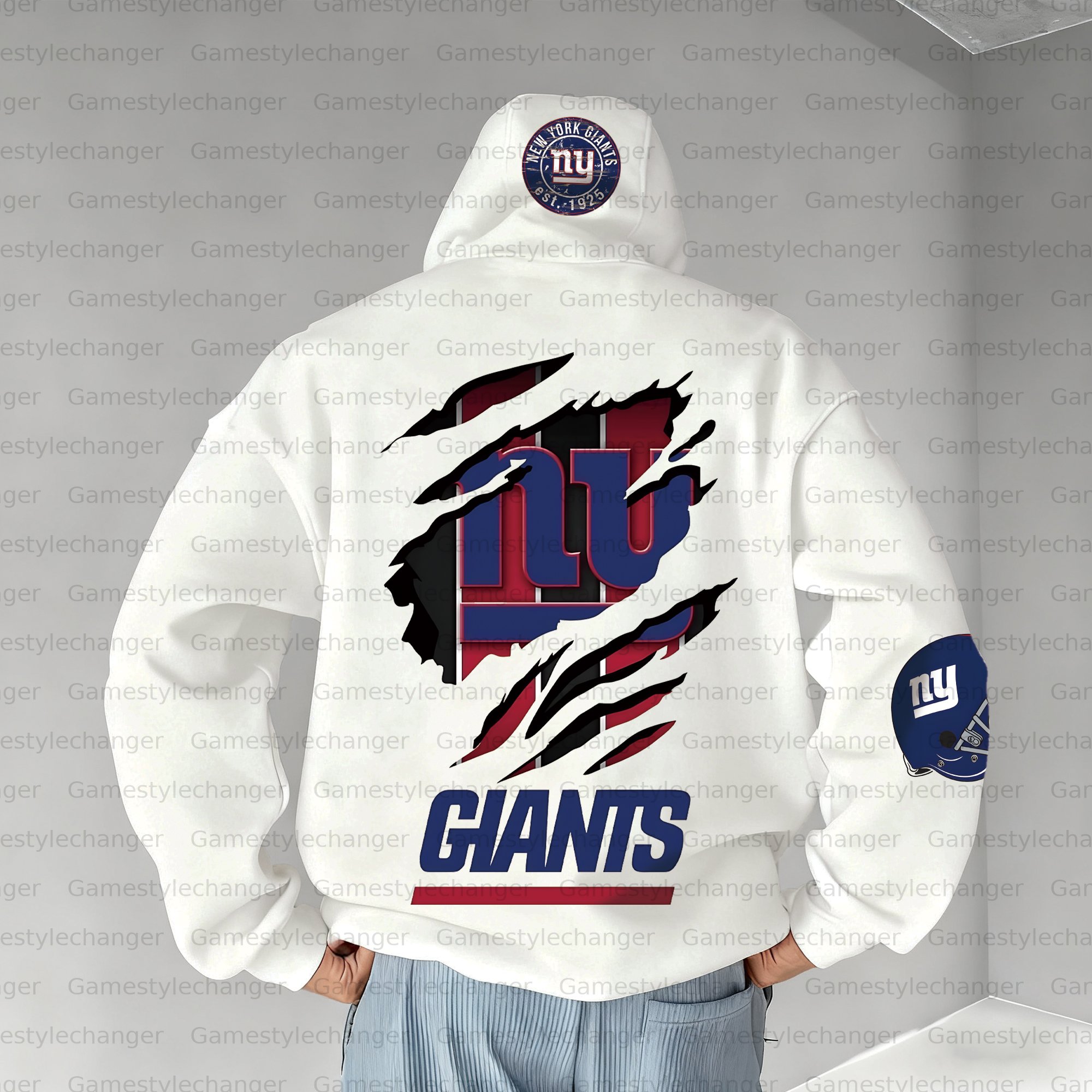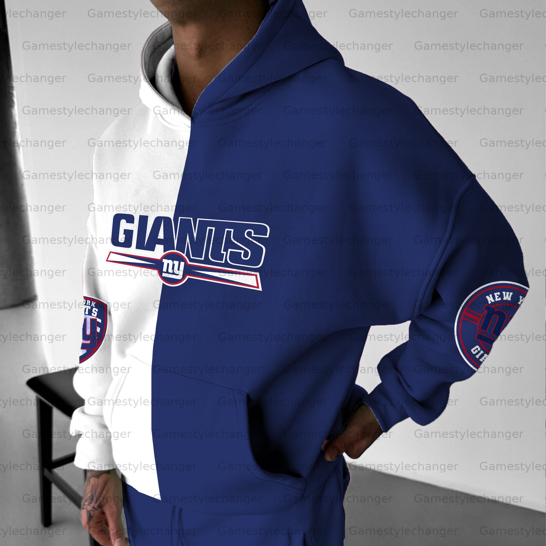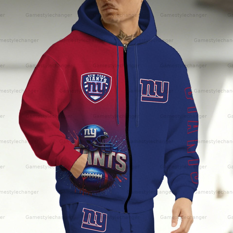 (Fleece-Lined Zip-up Hoodie) New York Giants Zip-up Hoodie & Pants 2 Pieces Set
