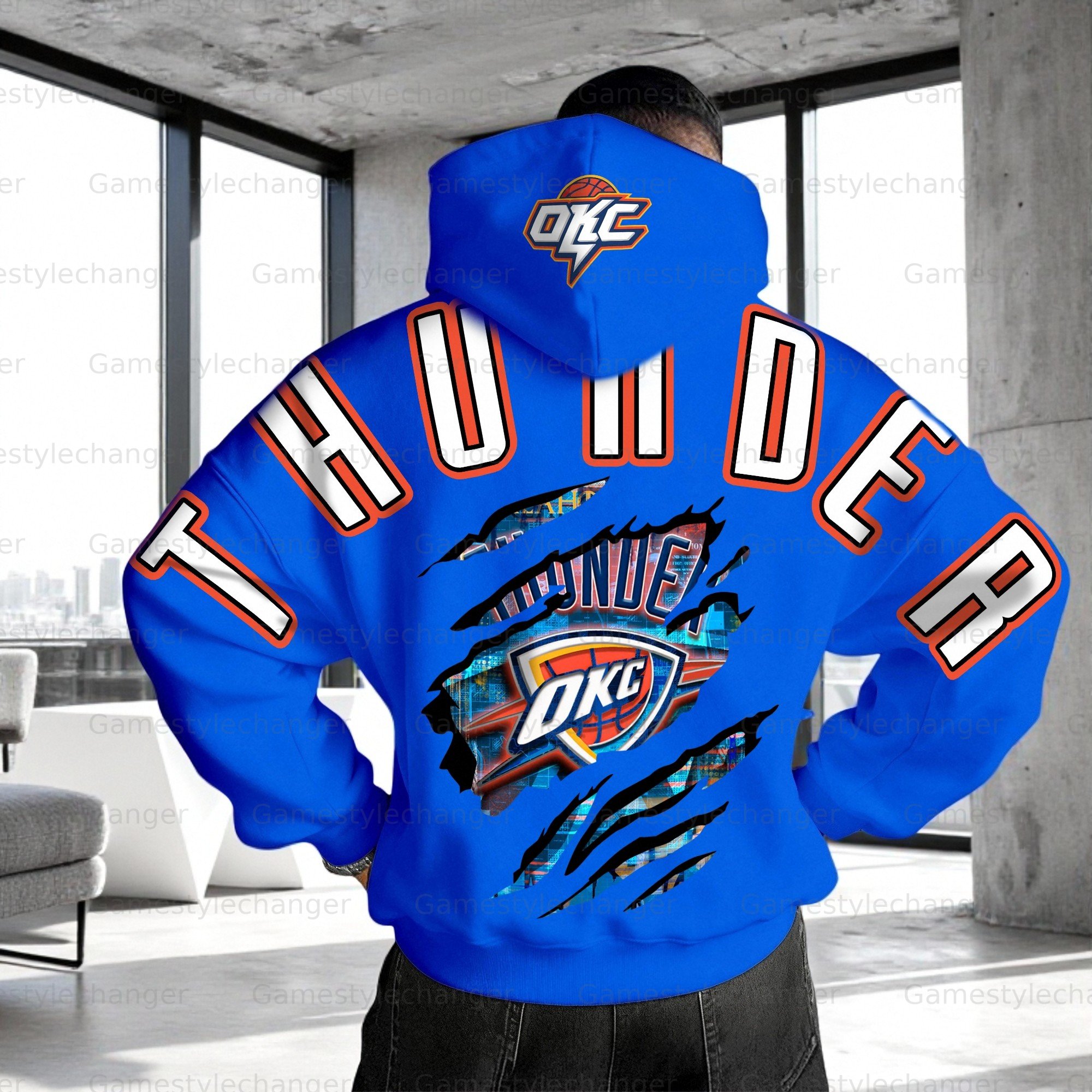 (Fleece-Lined Hoodie) ”Oklahoma City Thunder“3D Printed Pullover Hoodie And Sweatpant 2pcs Tracksuits