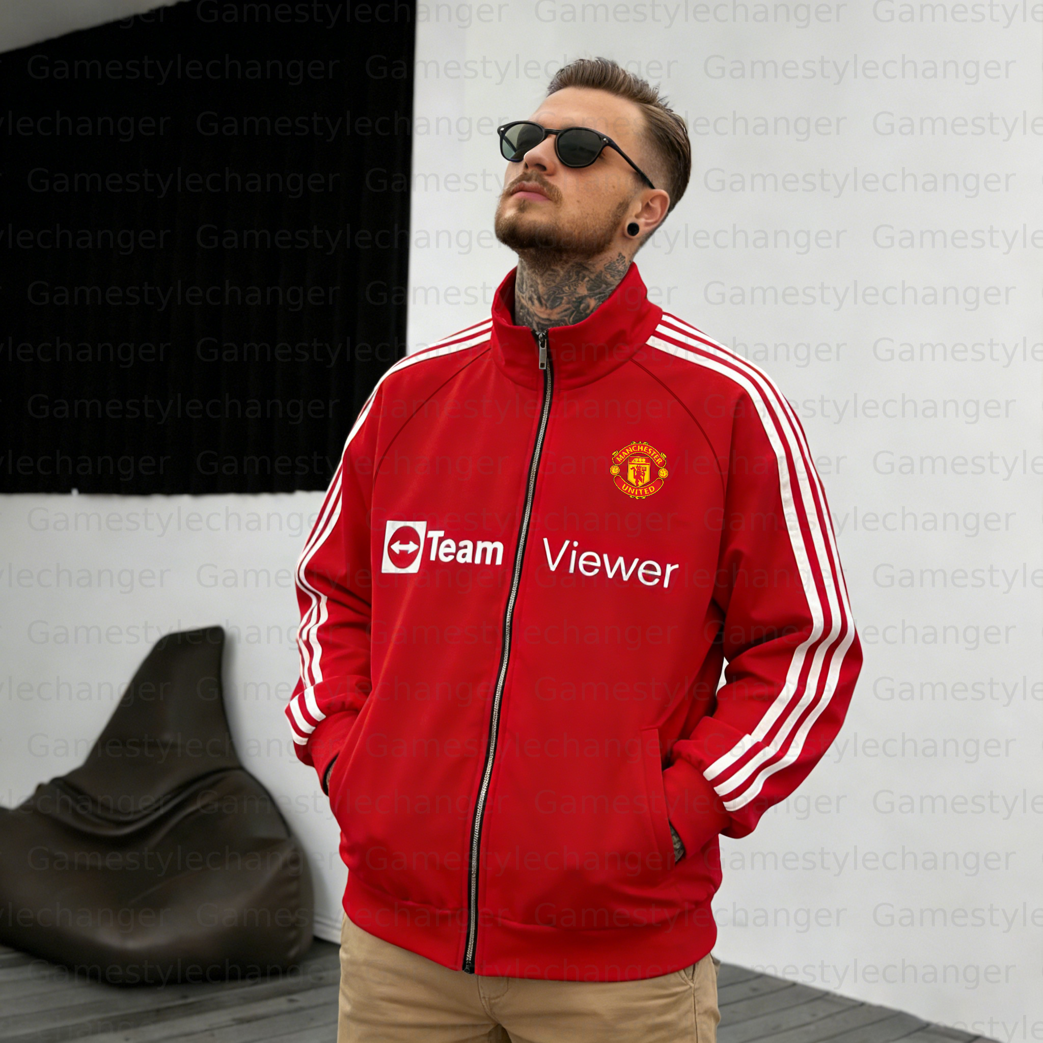 Unisex "Manchester United" Graphic Streetwear Vintage Stand-collar Raglan Sleeve Zip-up Cardigan