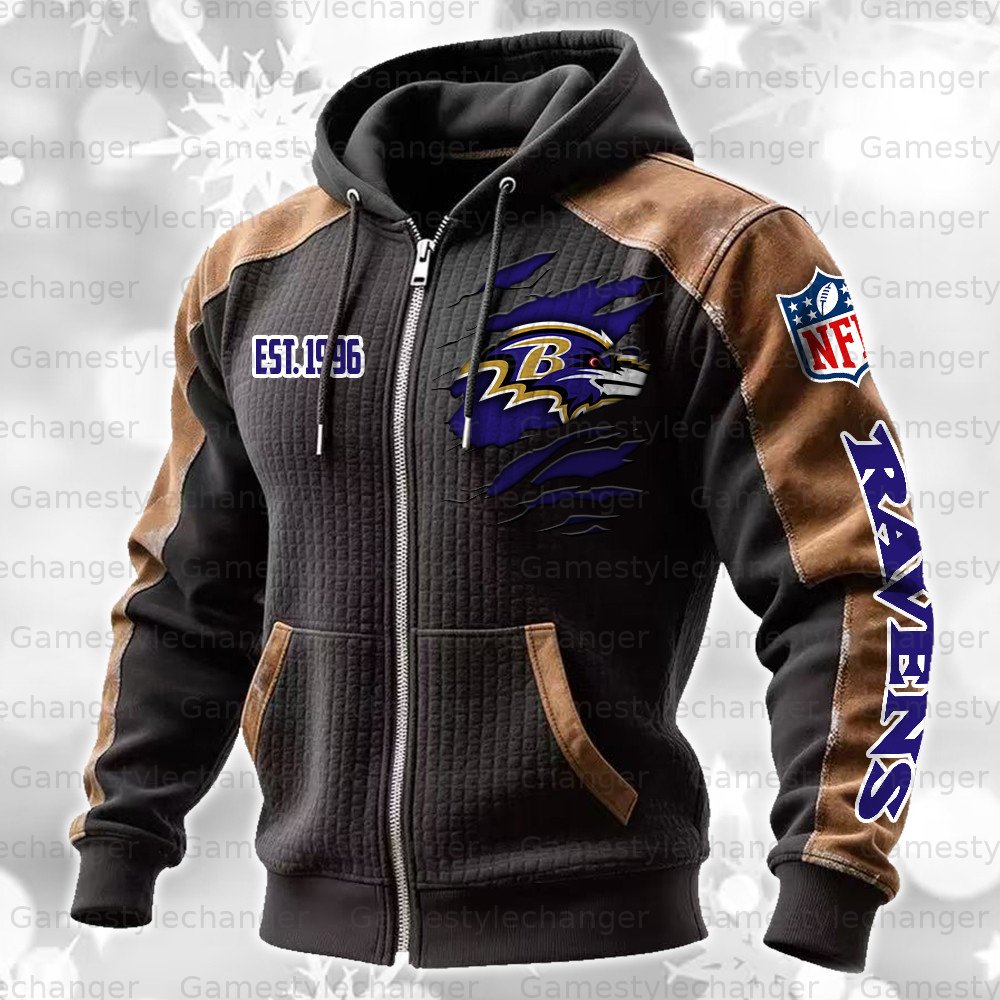 Baltimore Ravens Contrasting Shoulder Panels Hooded Zip-Up Jacket