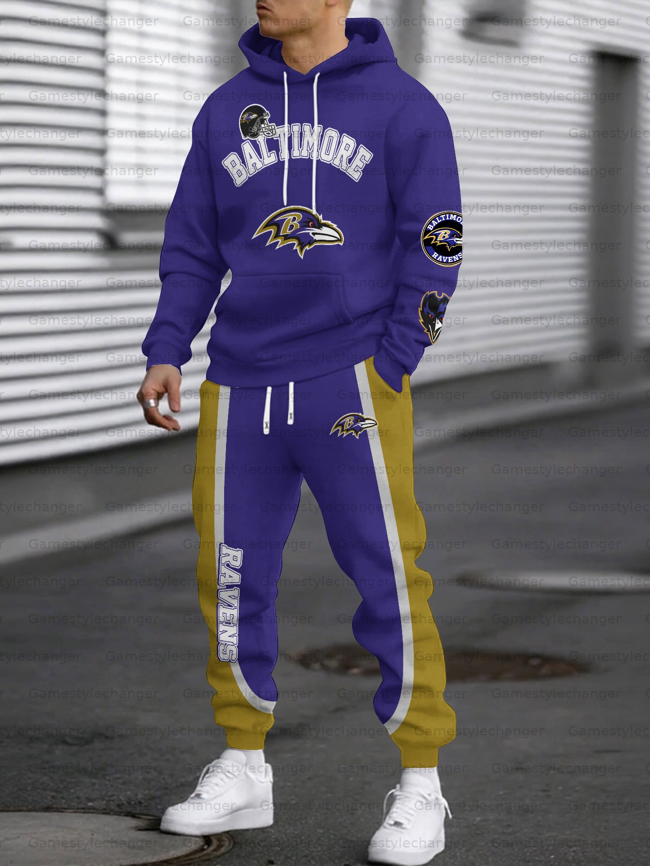 (Fleece-Lined Hoodie) Baltimore Ravens Hoodie & Pants 2 Pieces Set