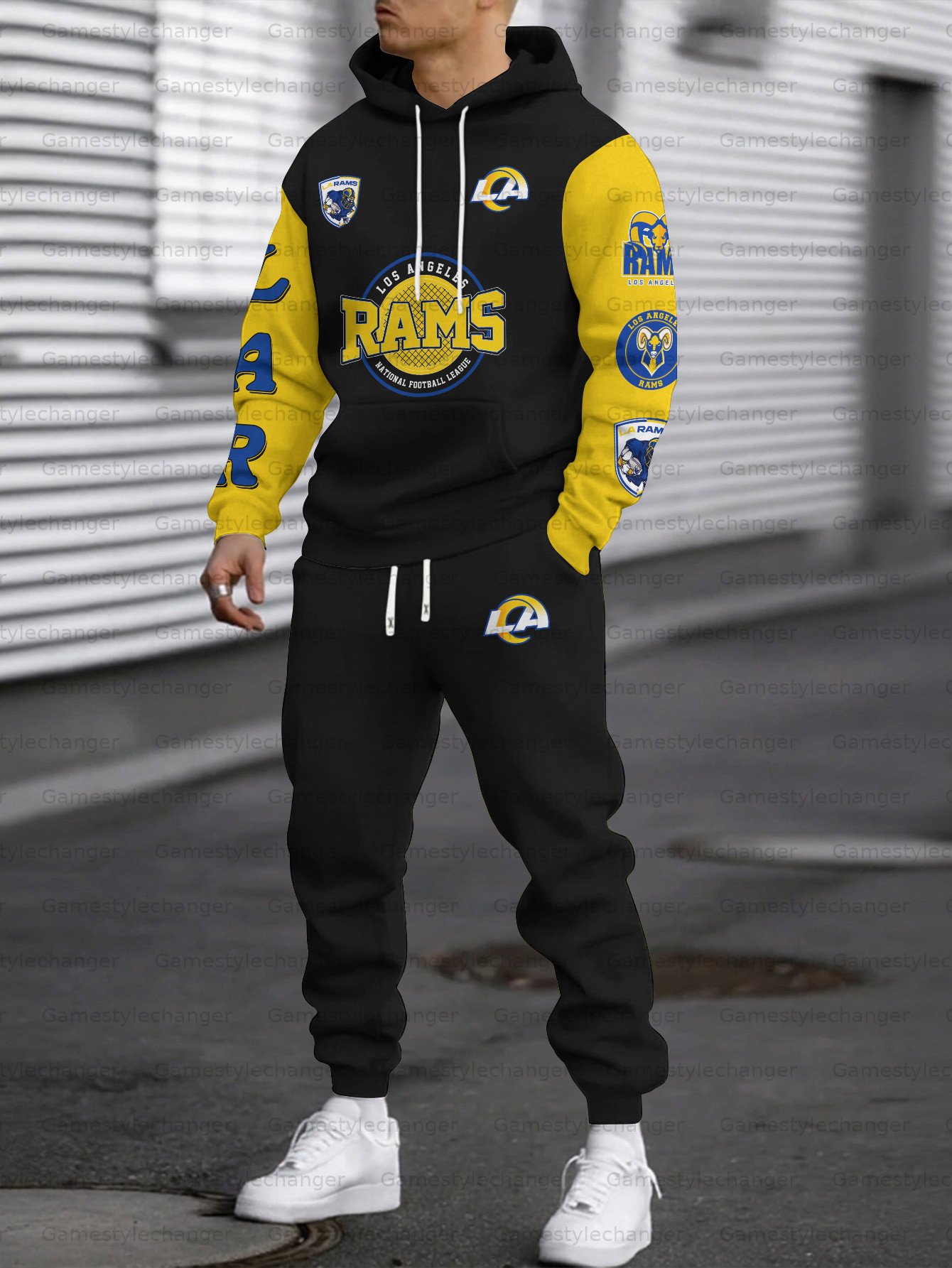 (Fleece-Lined Hoodie) Los Angeles Rams Hoodie & Pants 2 Pieces Set