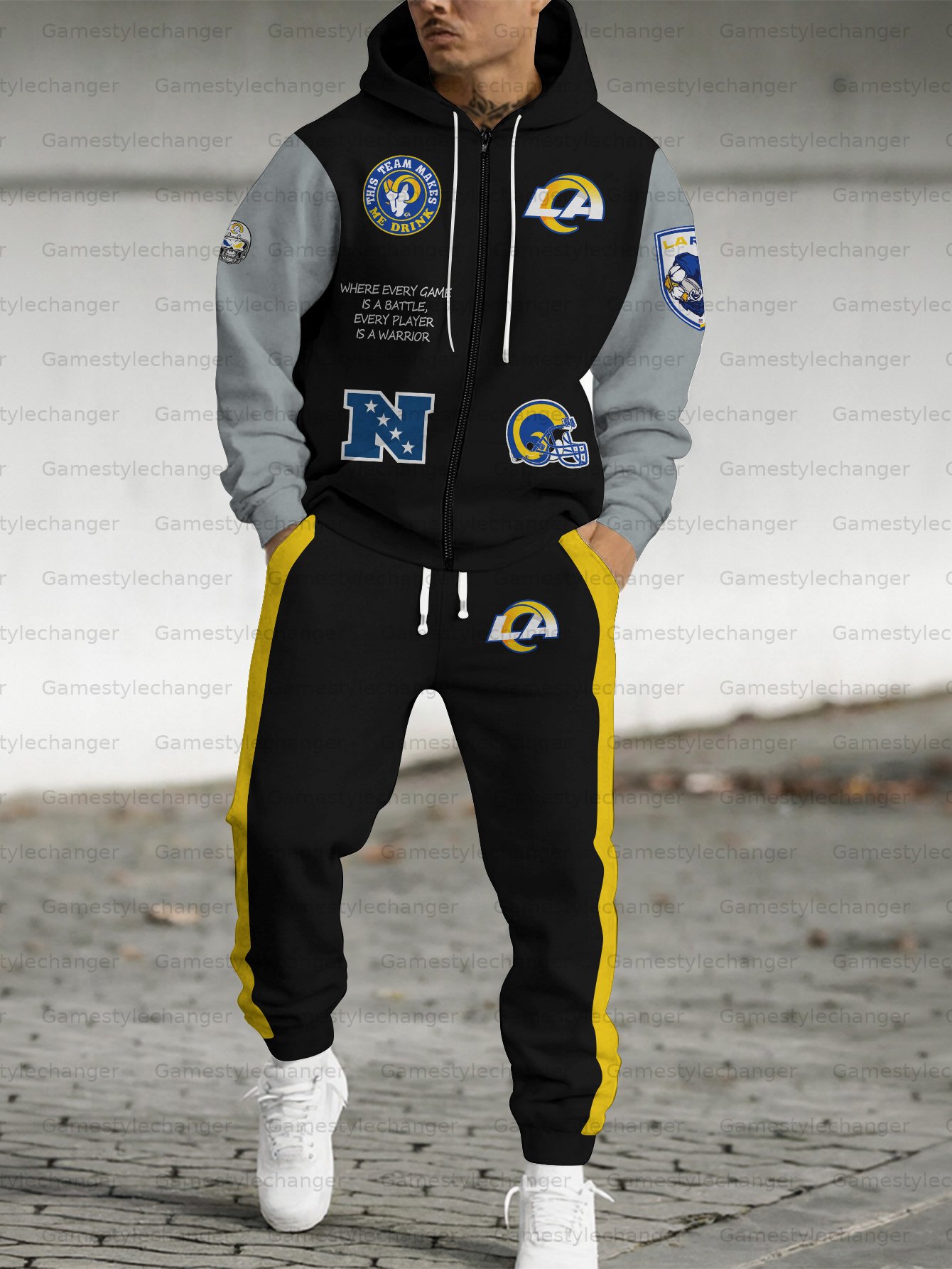 (Fleece-Lined Zip-up Hoodie) Los Angeles Rams Zip-up Hoodie & Pants 2 Pieces Set
