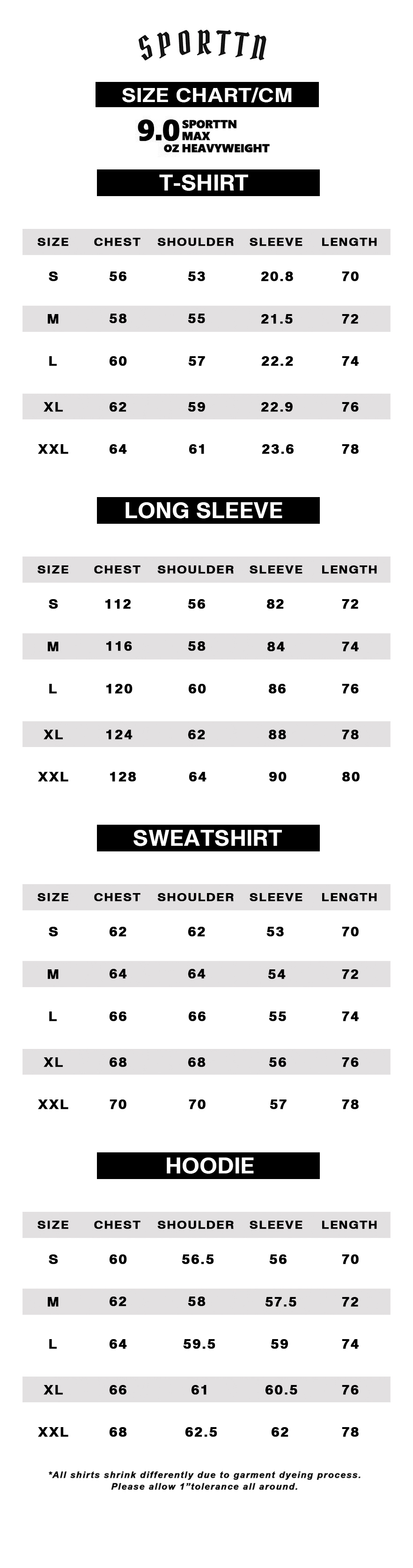 SIZE CHART