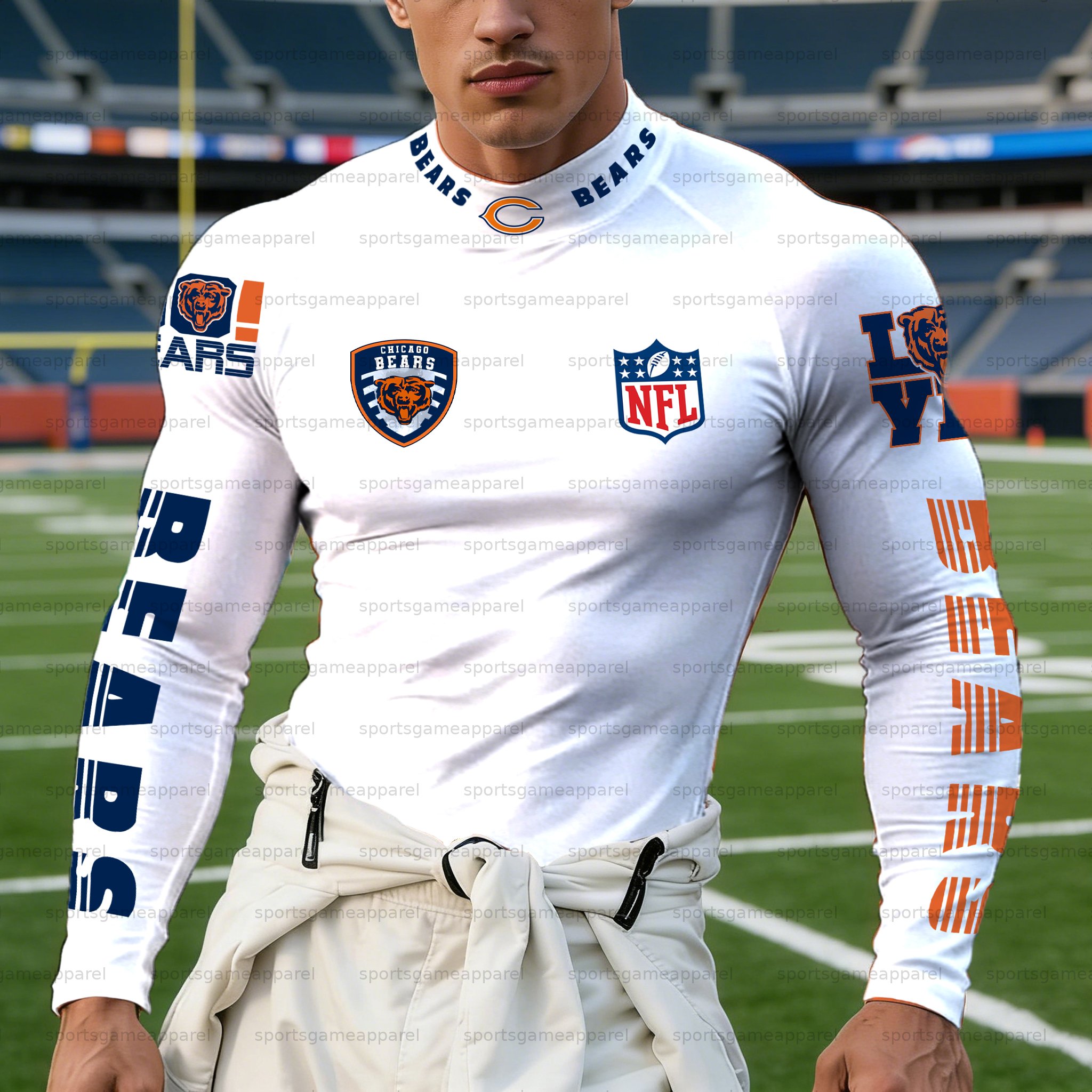 "Chicago Bears" Unisex Slim Fit Long Sleeve Casual Print T-Shirt