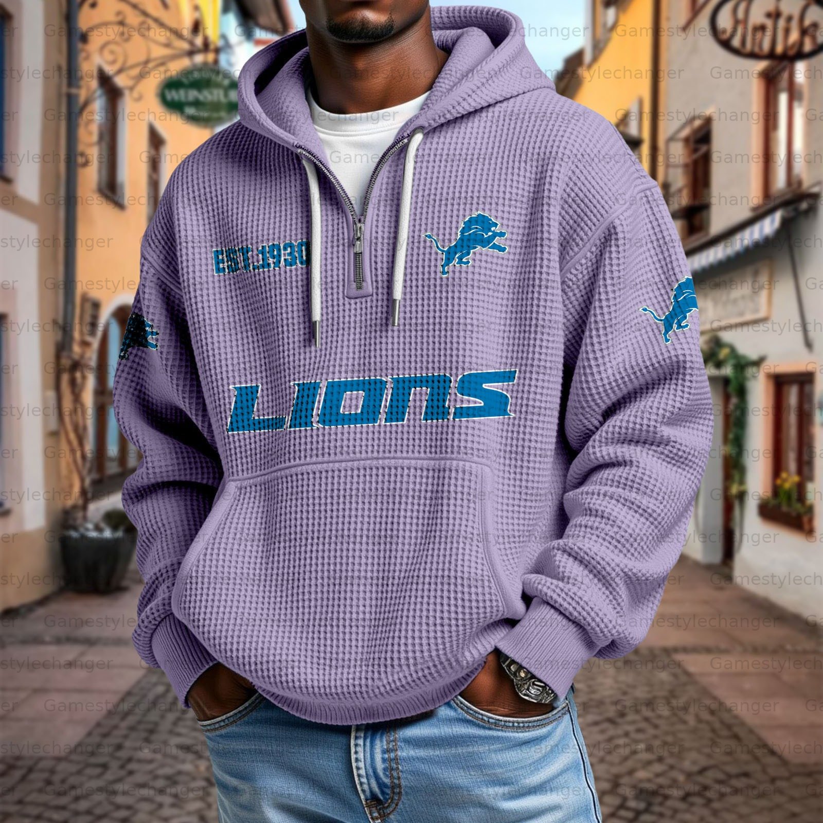 Unisex "Detroit Lions " Graphic Streetwear Vintage Waffle Fabric hoodie