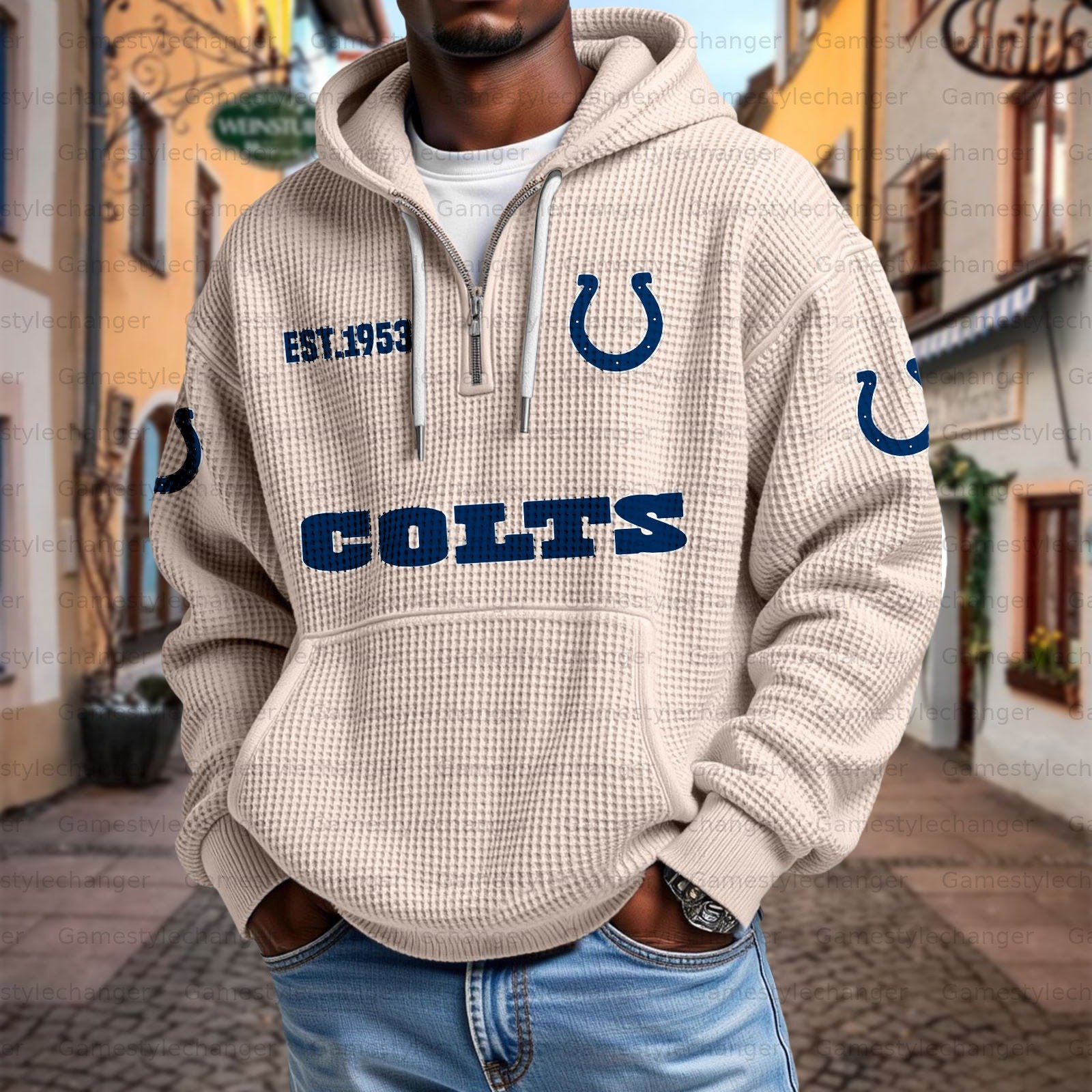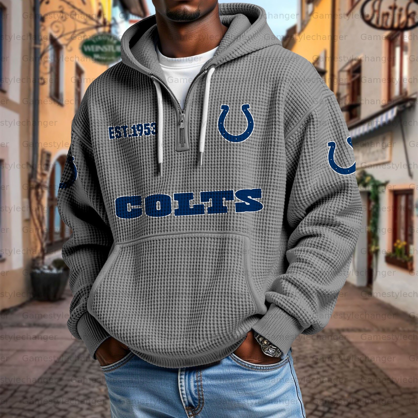 Unisex "Indianapolis Colts" Graphic Streetwear Vintage Waffle Fabric hoodie