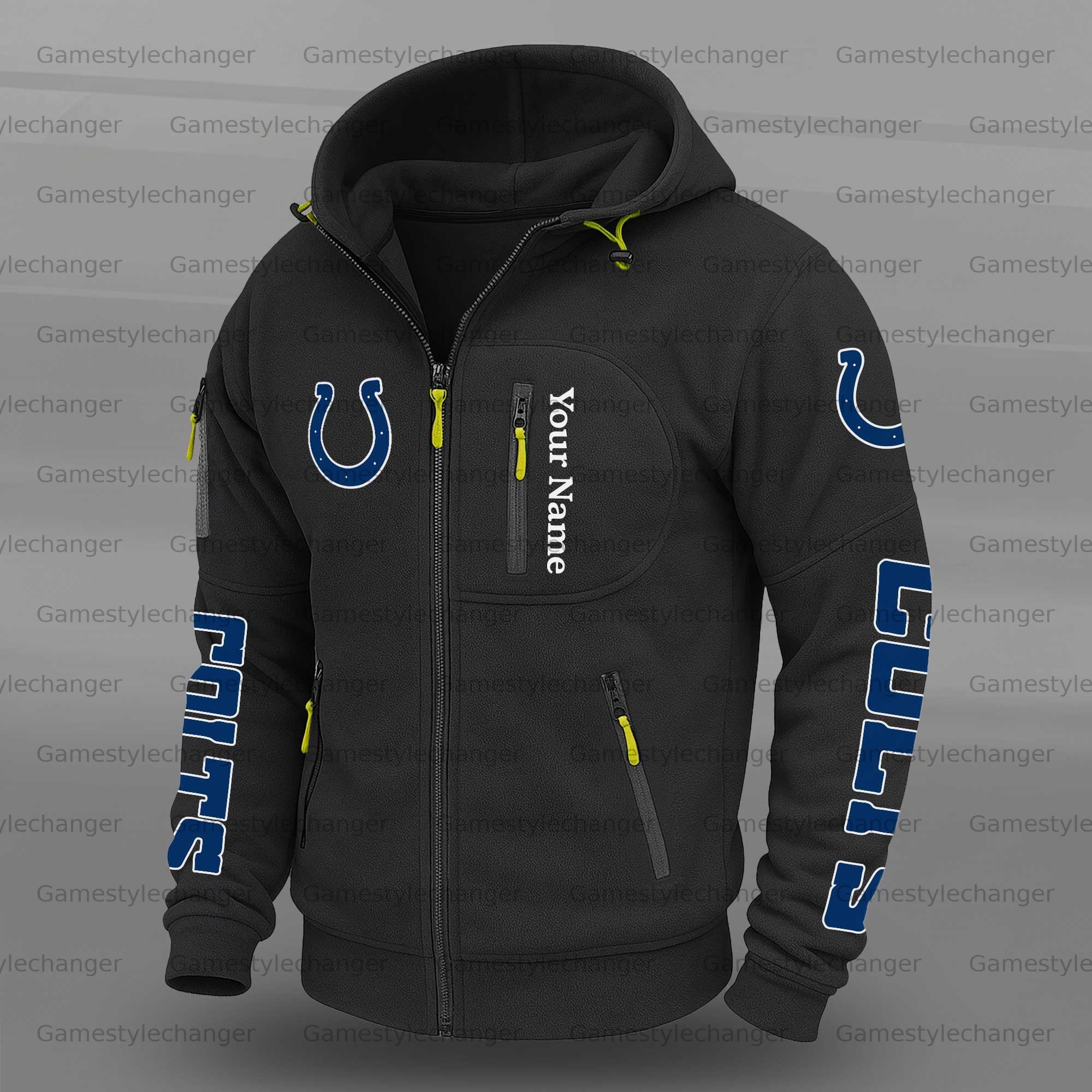 Indianapolis Colts Contrasting Shoulder Panels Hooded Zip-Up Jacket