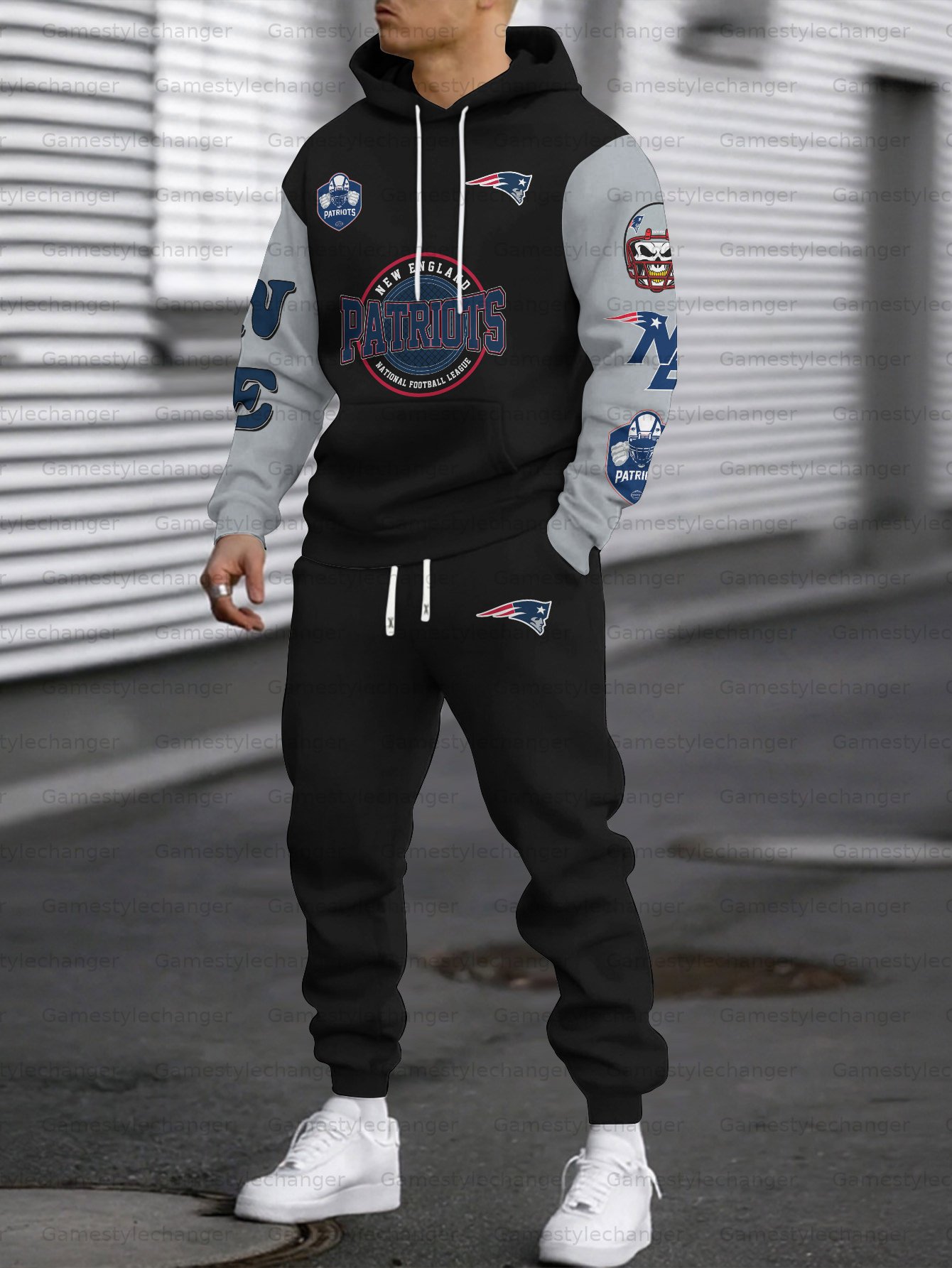 (Fleece-Lined Hoodie) New England Patriots Hoodie & Pants 2 Pieces Set
