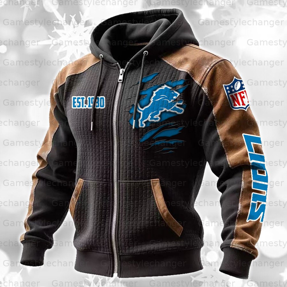 Detroit Lions Contrasting Shoulder Panels Hooded Zip-Up Jacket