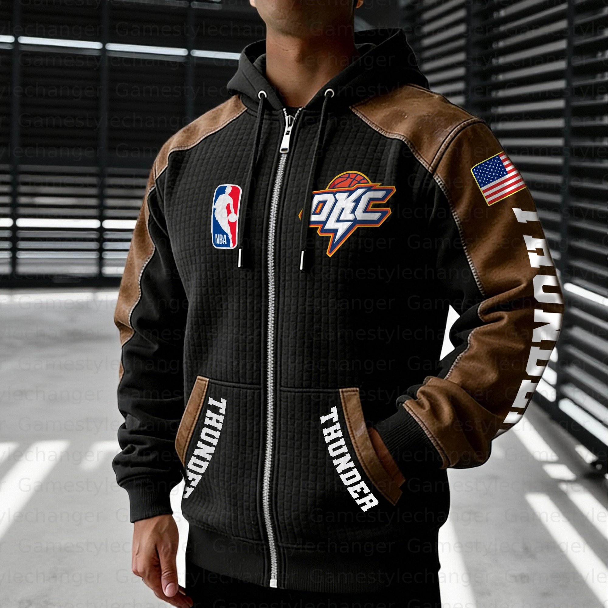 Oklahoma City Thunder Contrasting Shoulder Panels Hooded Zip-Up Jacket