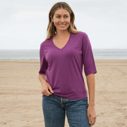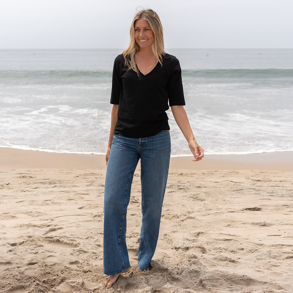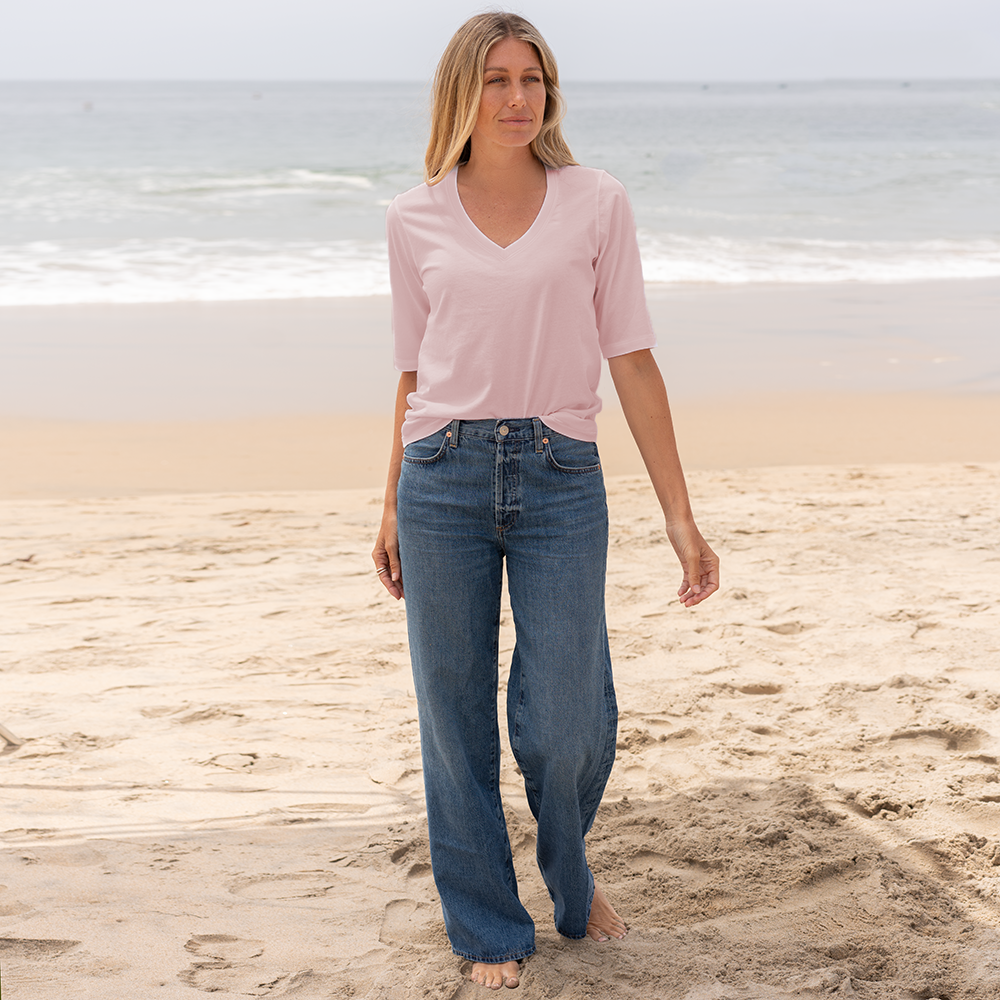 Our best-selling elbow sleeve tee—now with the timeless V-neckline you've been asking for. Made from the same ultra-soft, breathable organic cotton as , this new style was created by popular demand. Designed for a relaxed yet refined drape, it’s perfect for effortless layering or wearing solo.