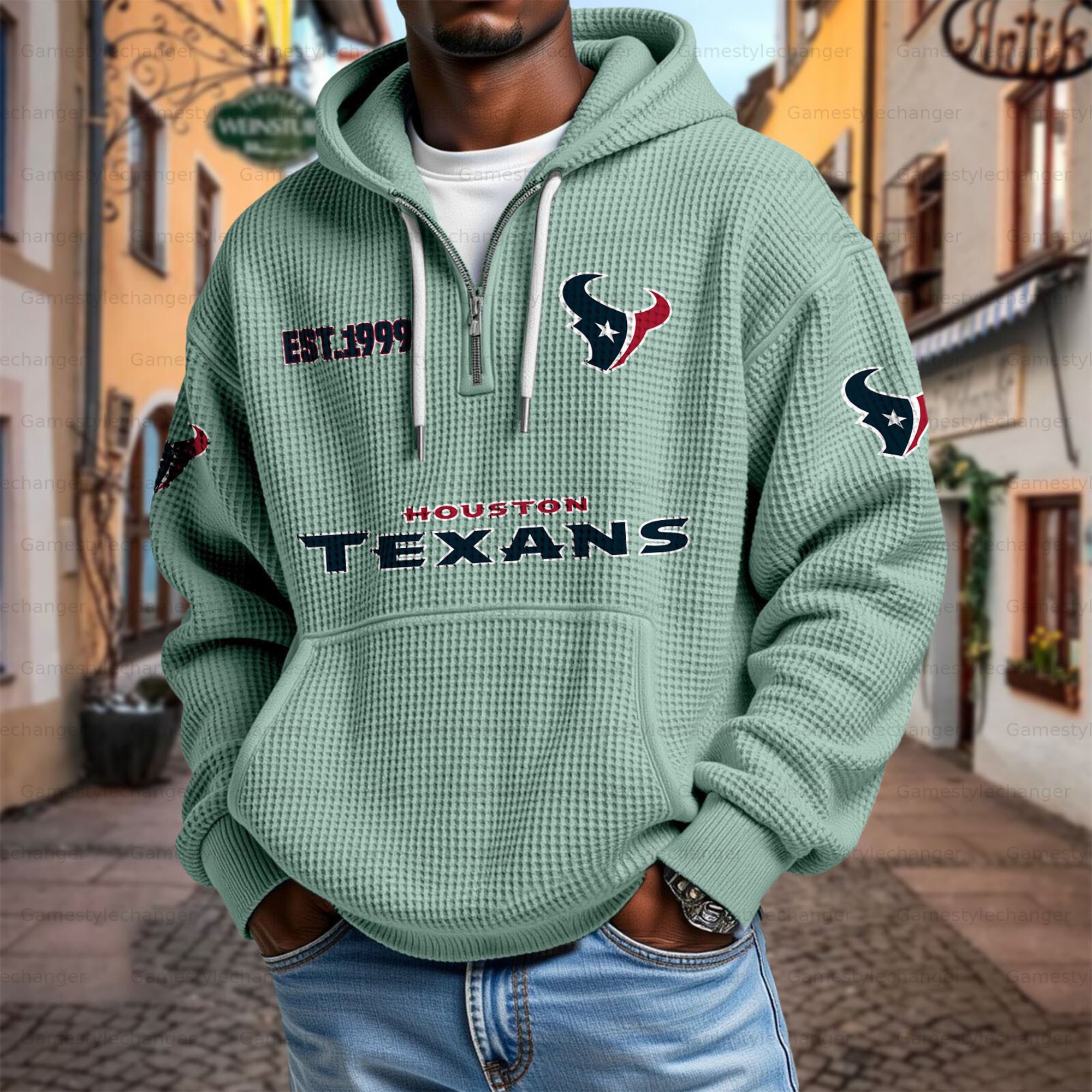 Unisex "Houston Texans" Graphic Streetwear Vintage Waffle Fabric hoodie