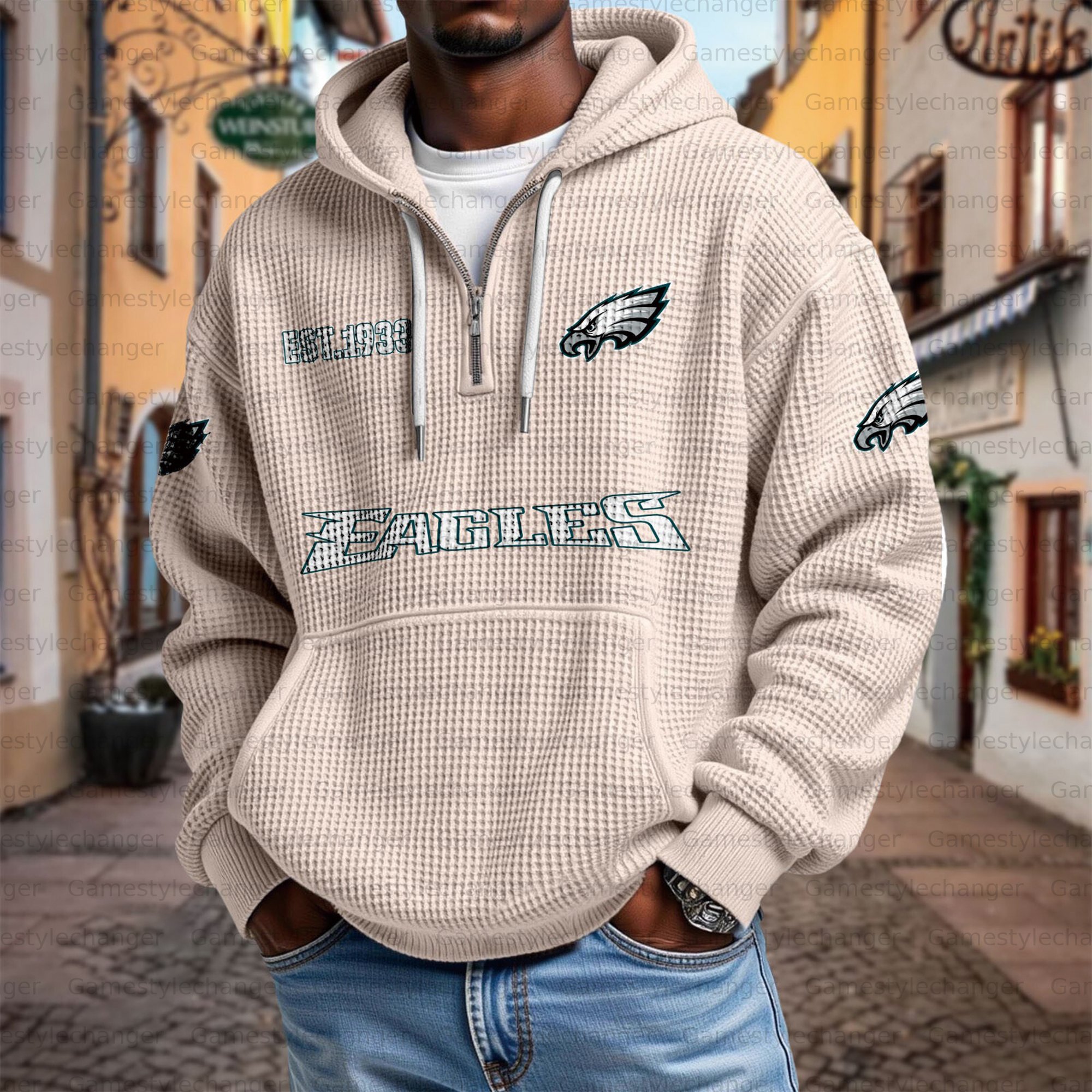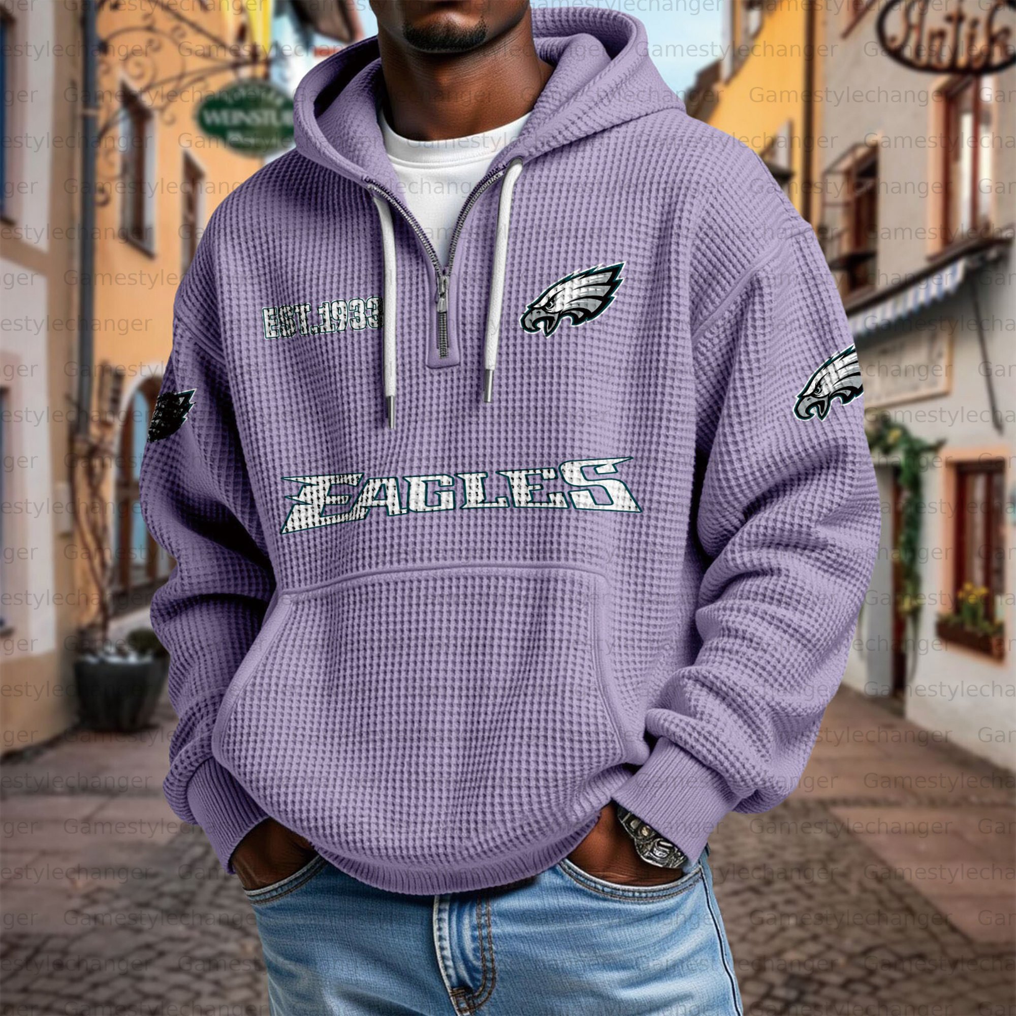 Unisex "Philadelphia Eagles" Graphic Streetwear Vintage Waffle Fabric hoodie