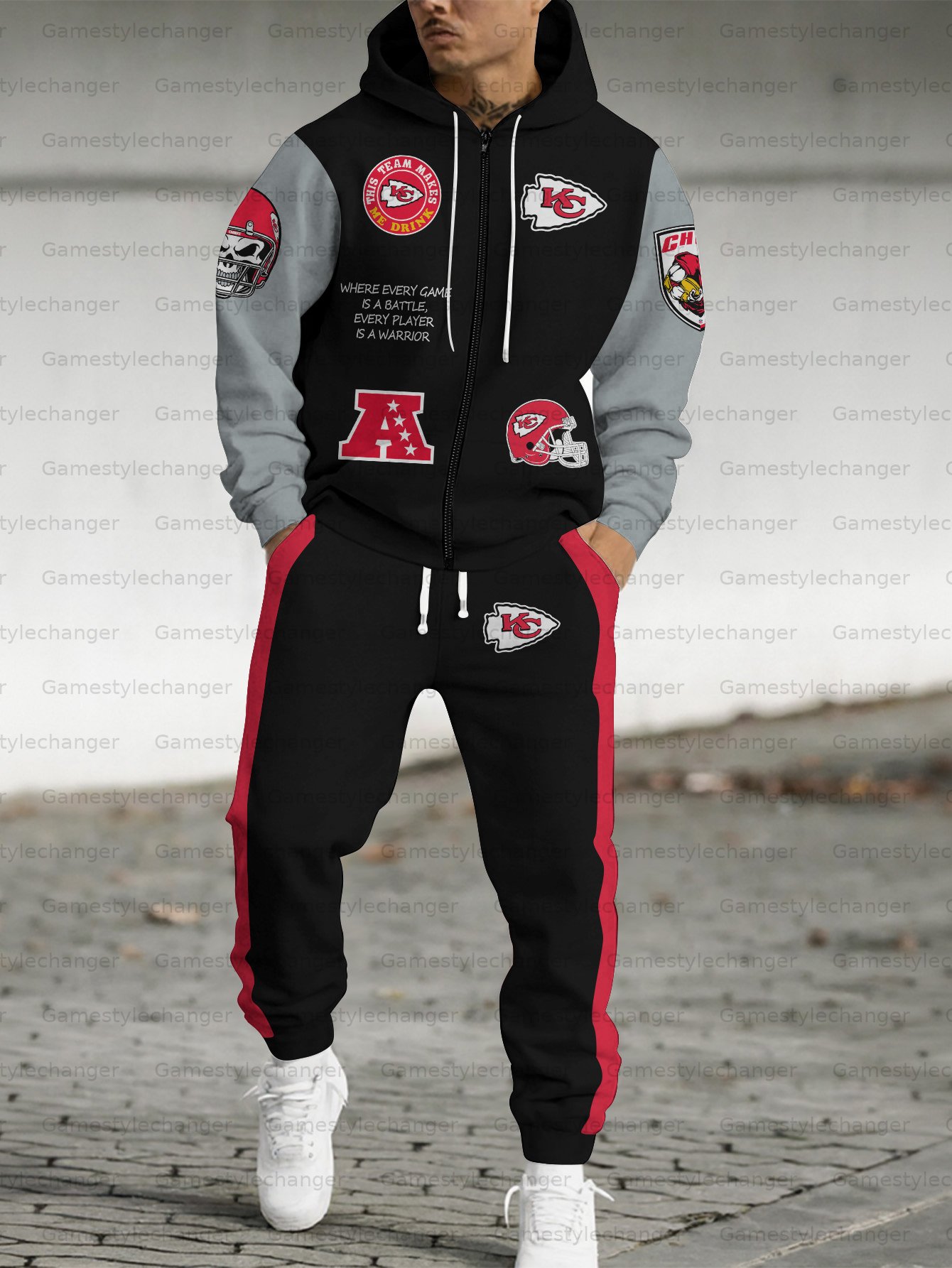 (Fleece-Lined Zip-up Hoodie) Kansas City Chiefs Zip-up Hoodie & Pants 2 Pieces Set