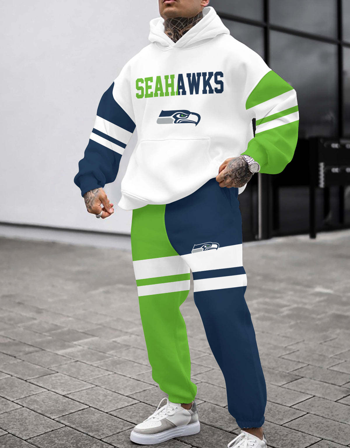 (Fleece-Lined Hoodie) Seattle Seahawks 3D Printed Pullover Fleece-Lined Hoodie And Sweatpant 2pcs Tracksuits