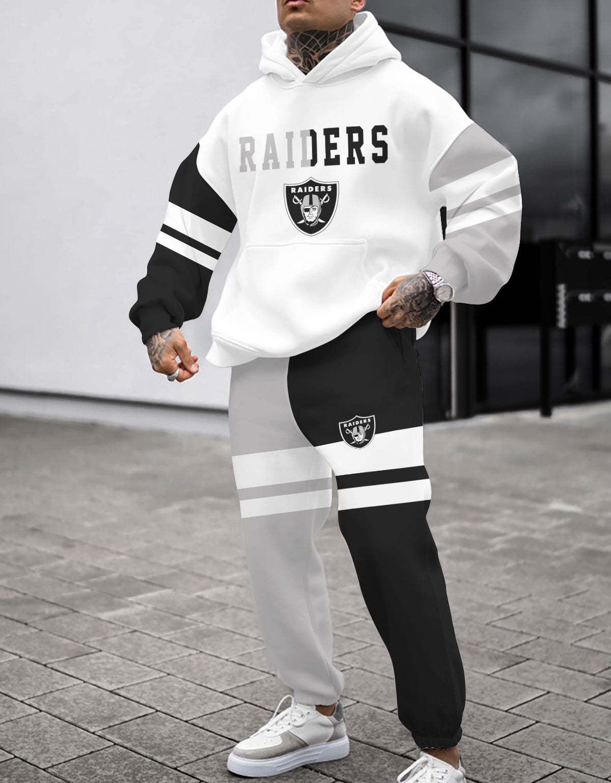 (Fleece-Lined Hoodie) Las Vegas Raiders 3D Printed Pullover Fleece-Lined Hoodie And Sweatpant 2pcs Tracksuits