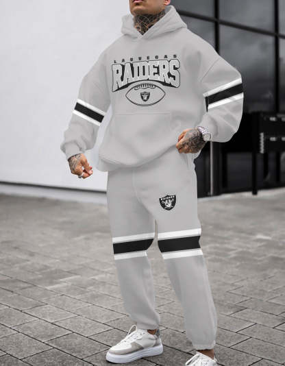 (Fleece-Lined Hoodie) Las Vegas Raiders 3D Printed Pullover Fleece-Lined Hoodie And Sweatpant 2pcs Tracksuits