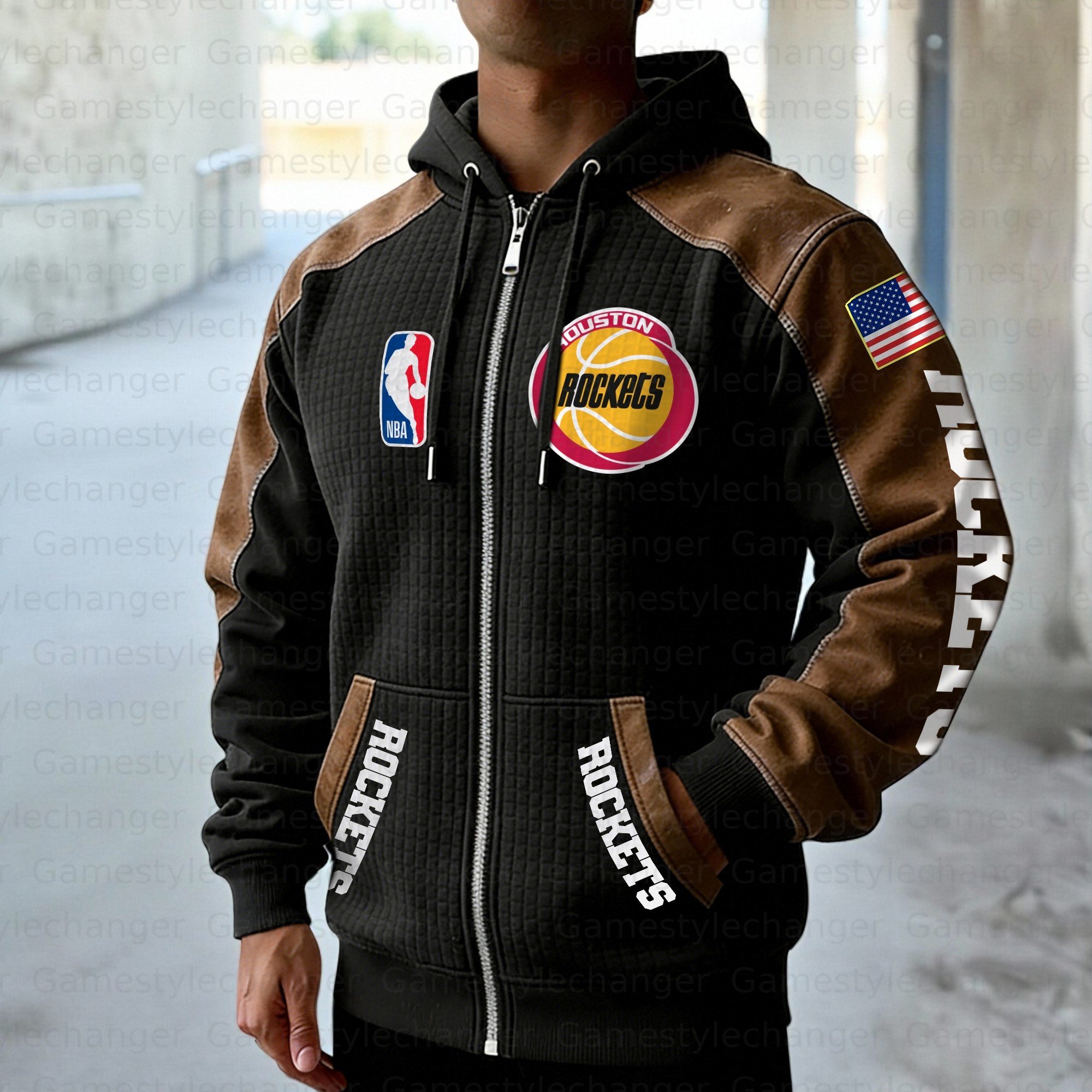 Houston Rockets Contrasting Shoulder Panels Hooded Zip-Up Jacket