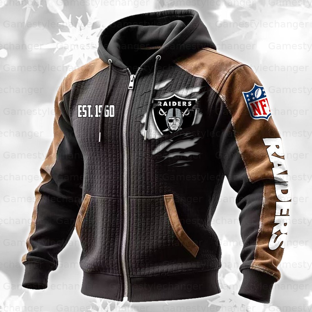 Las Vegas Raiders Contrasting Shoulder Panels Hooded Zip-Up Jacket
