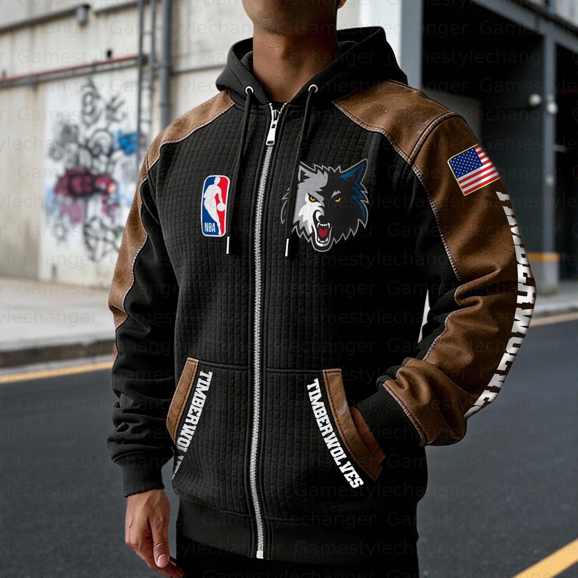 Minnesota Timberwolves Contrasting Shoulder Panels Hooded Zip-Up Jacket