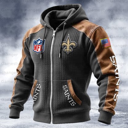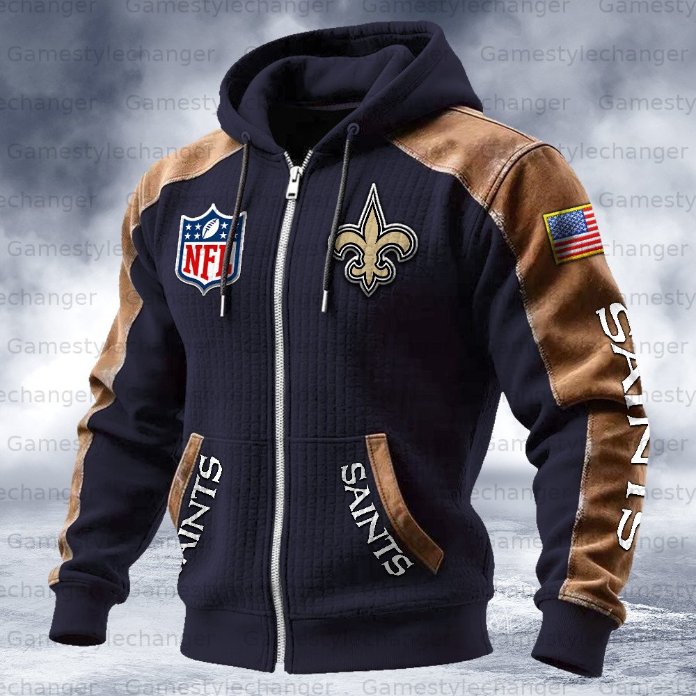 New Orleans Saints Contrasting Shoulder Panels Hooded Zip-Up Jacket