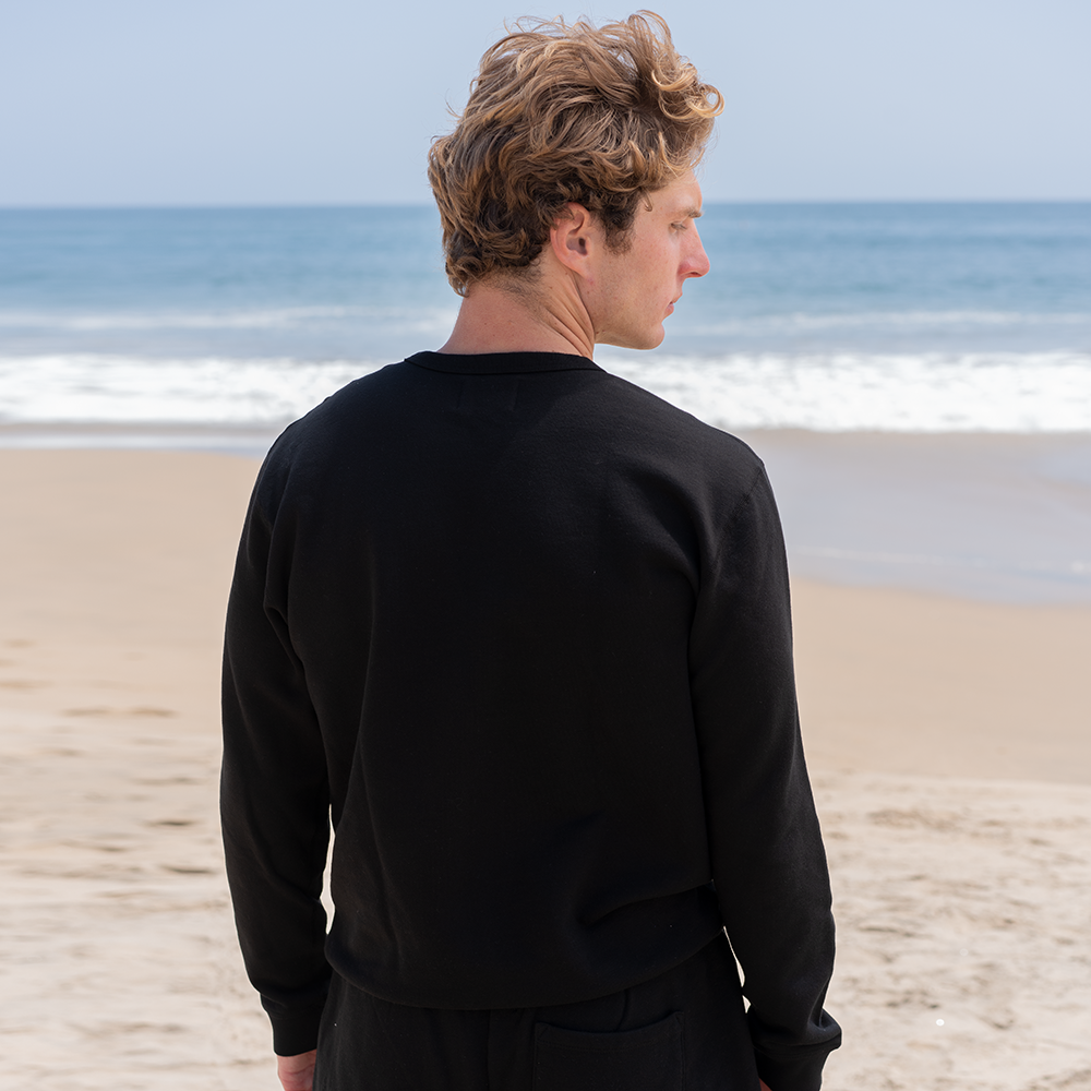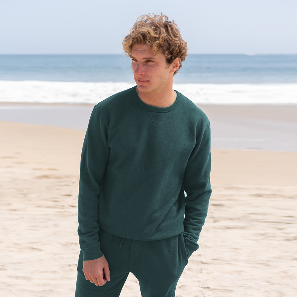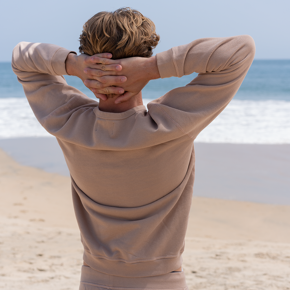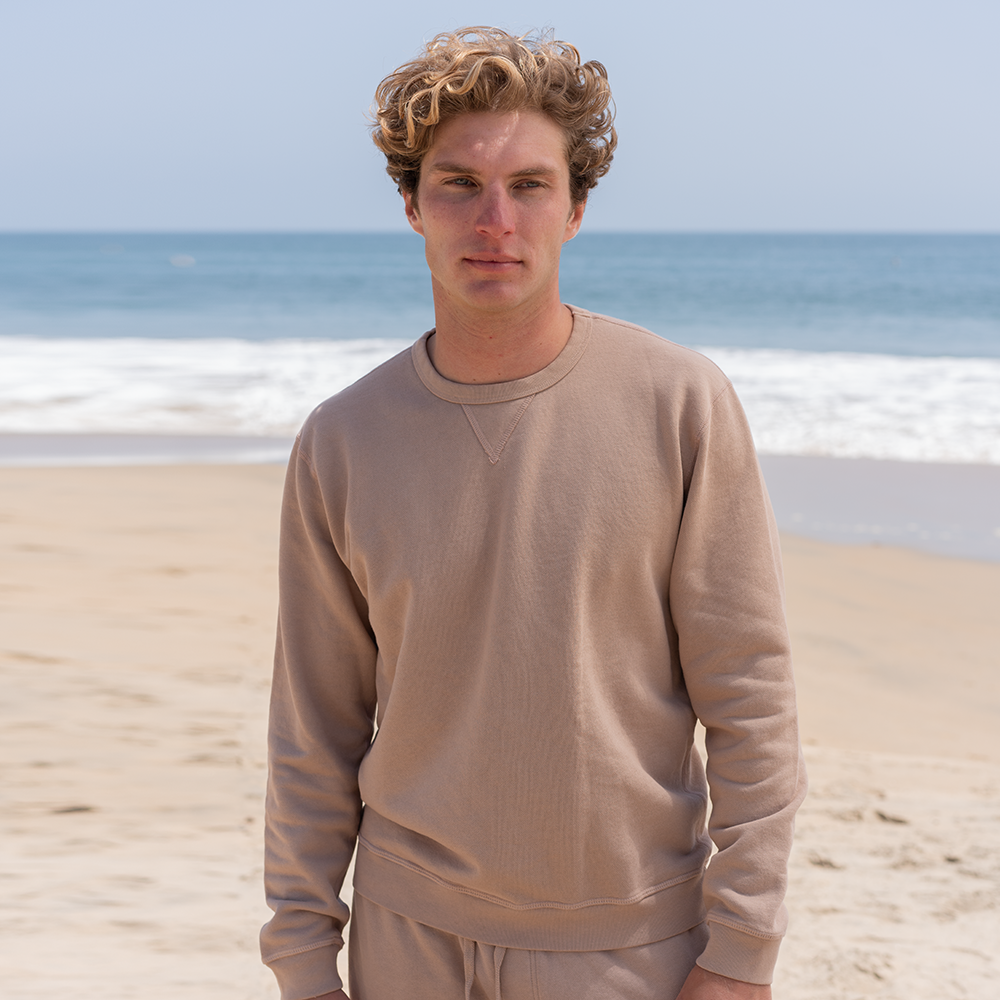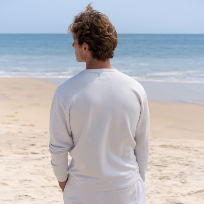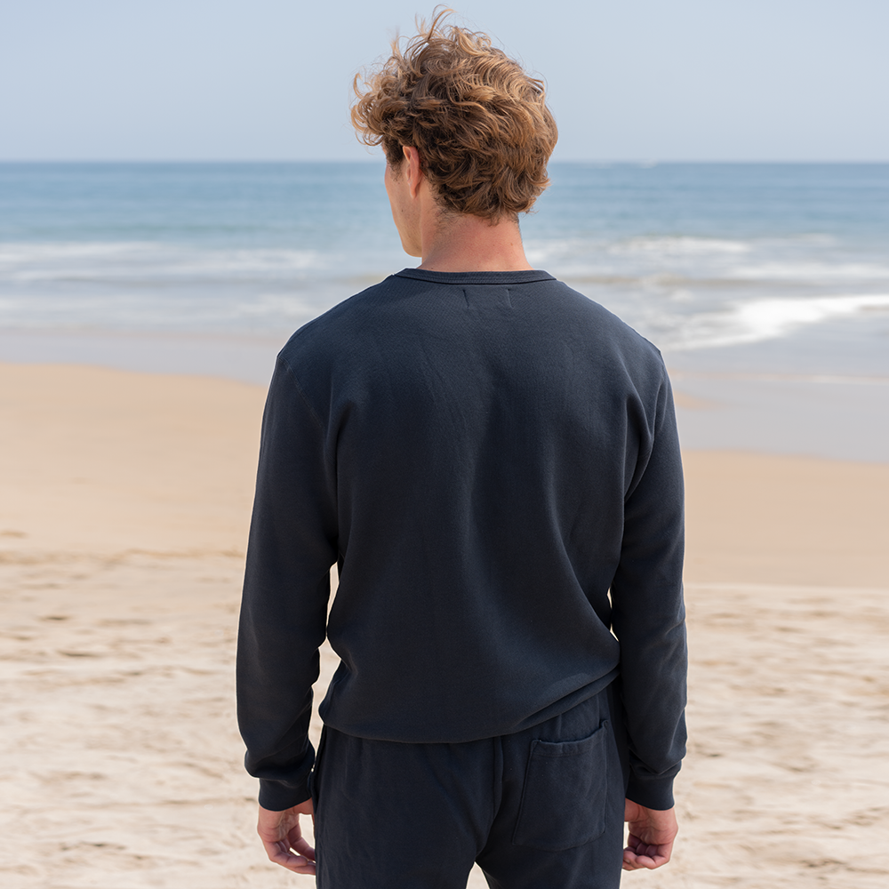 A sustainably sourced super soft 100% organic cotton French Terry sweatshirt, with subtle details like flatlock seams and binding. This pullover embodies the classic essential piece your wardrobe is missing. You'll be reaching for it time and time again, as it seamlessly compliments any outfit.