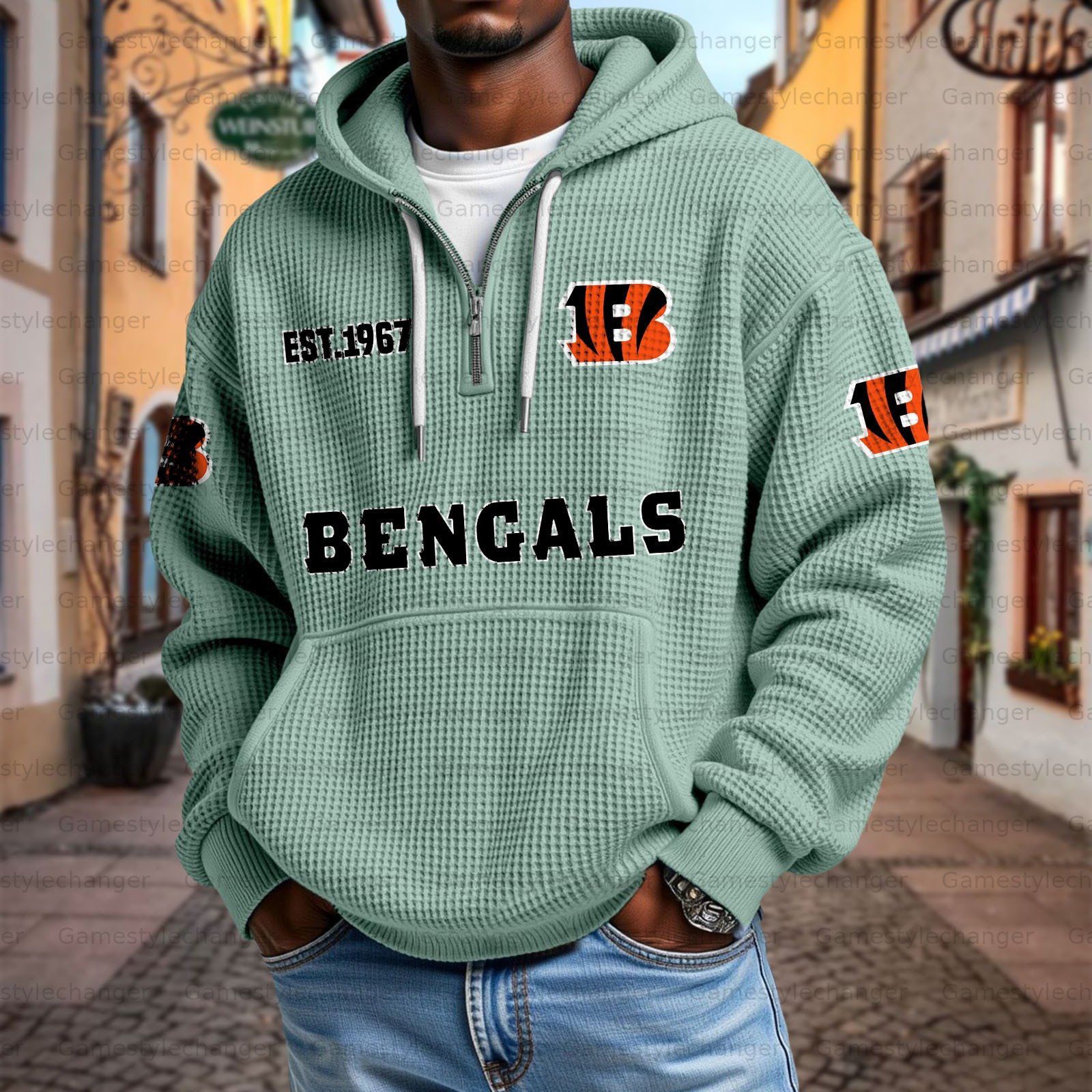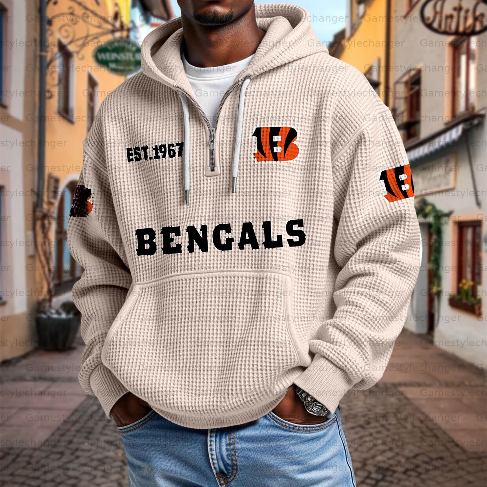 Unisex "Cincinnati Bengals" Graphic Streetwear Vintage Waffle Fabric hoodie