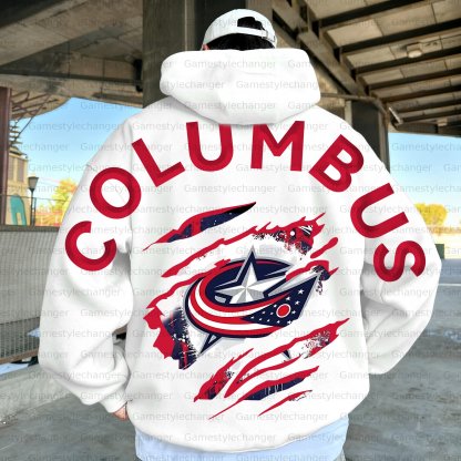 Unisex "Columbus Blue Jackets" Graphic Streetwear Vintage Plush Hoodie
