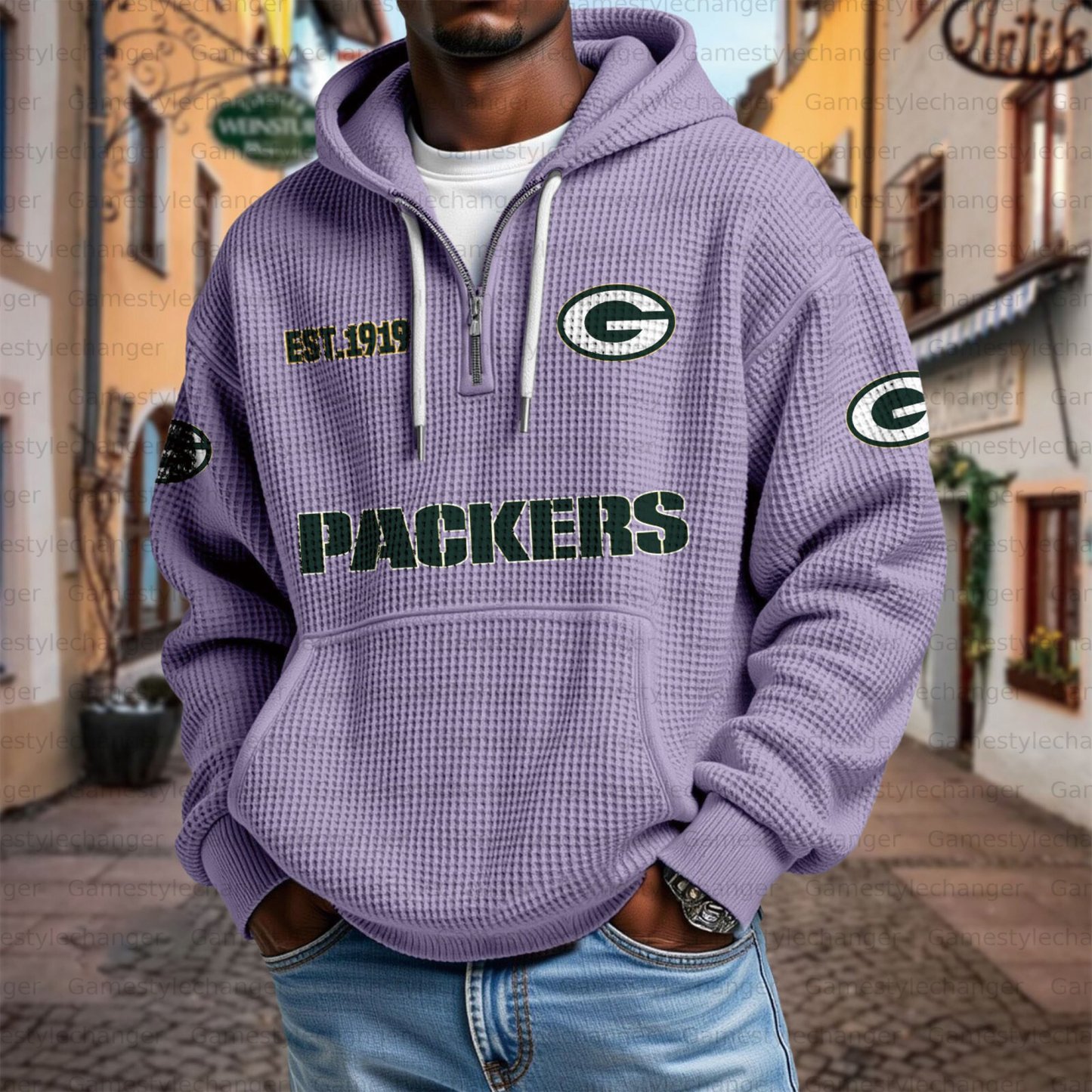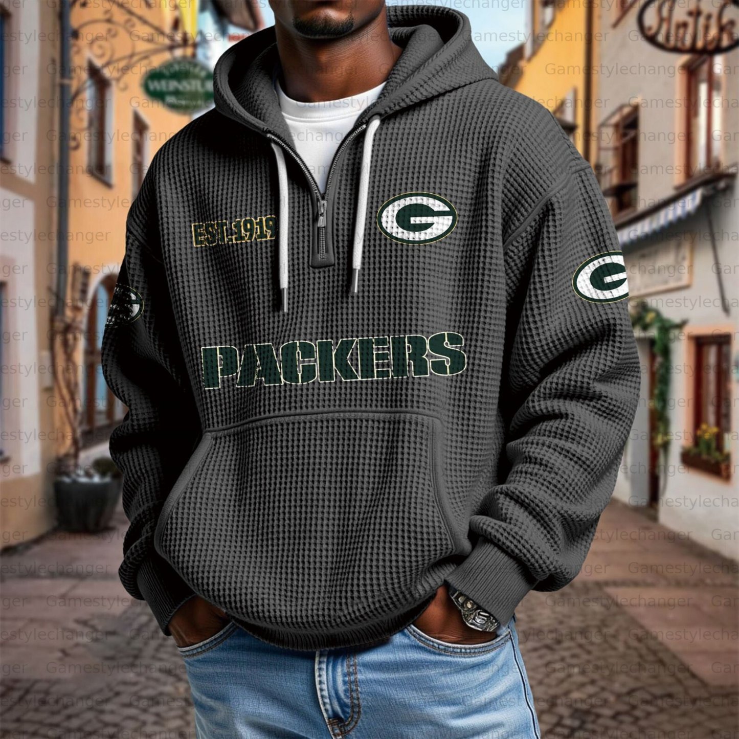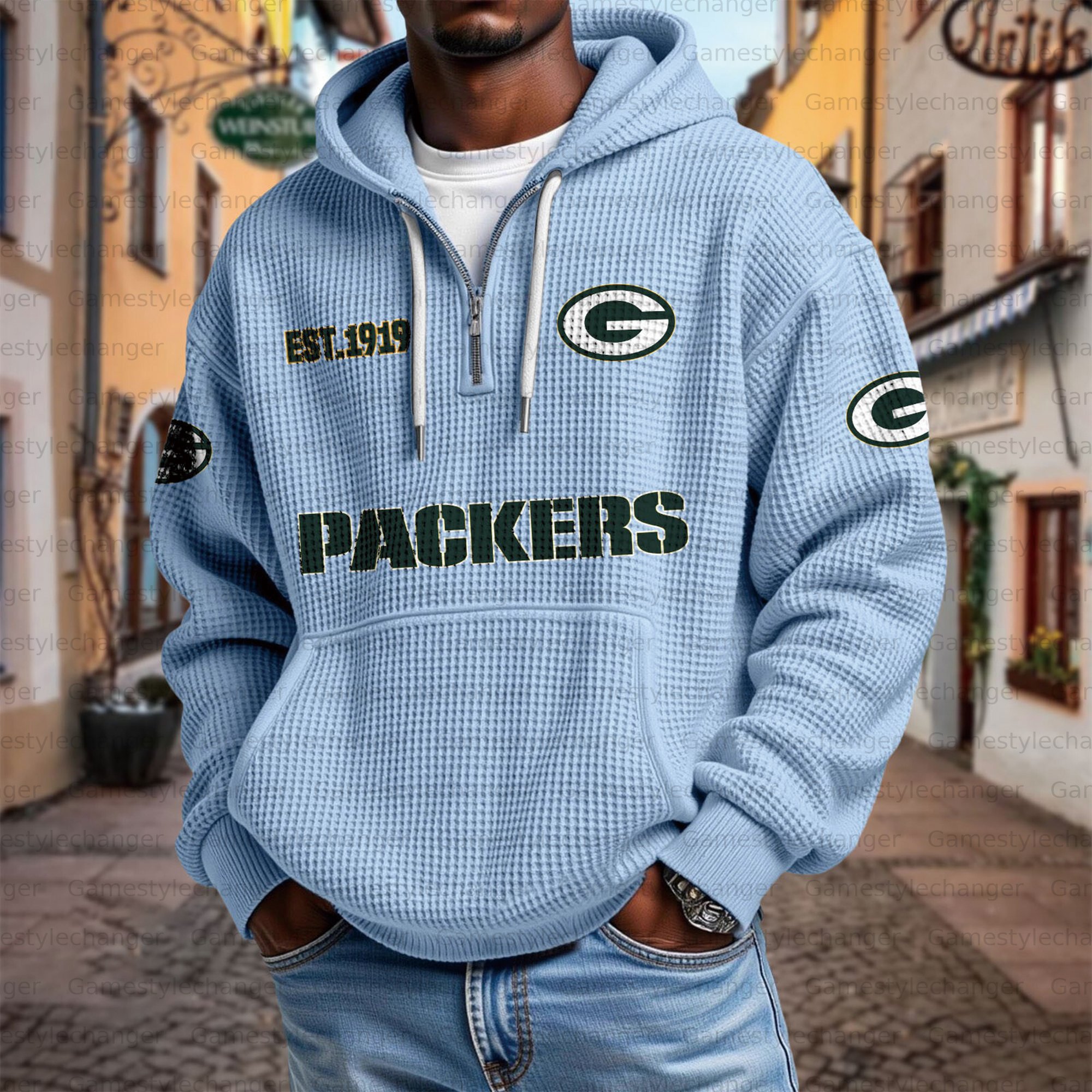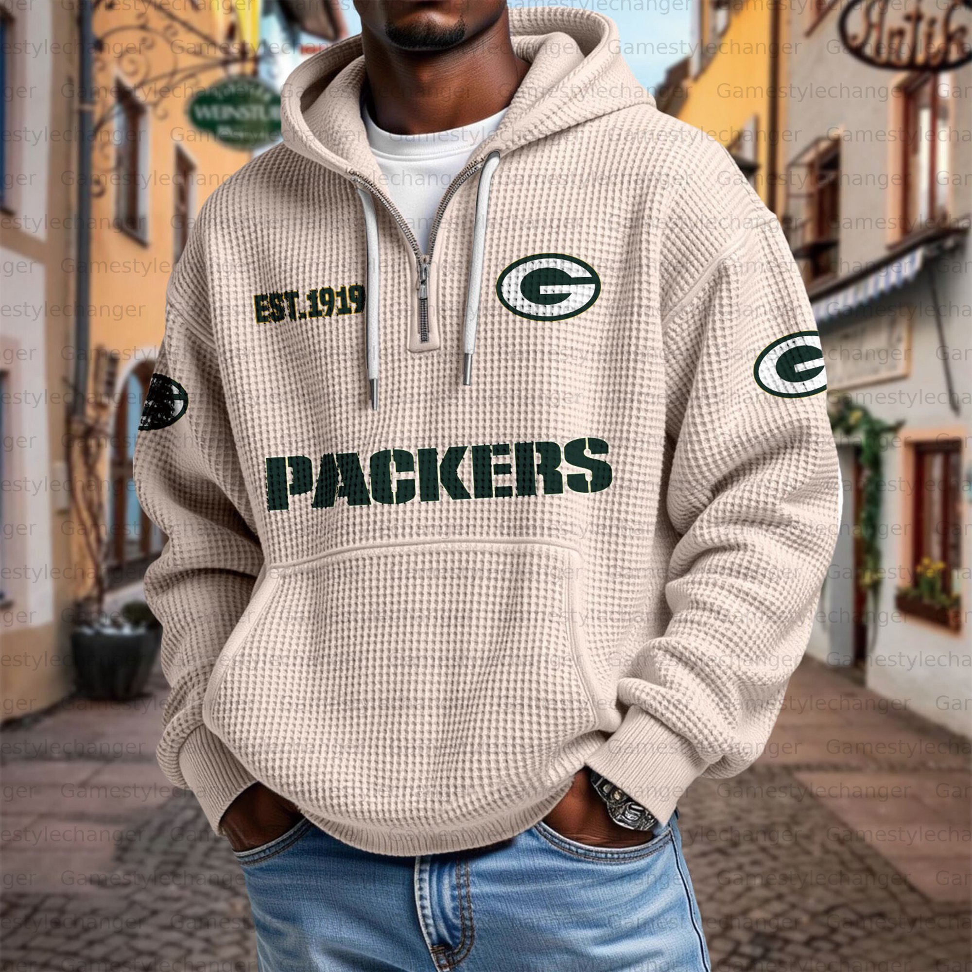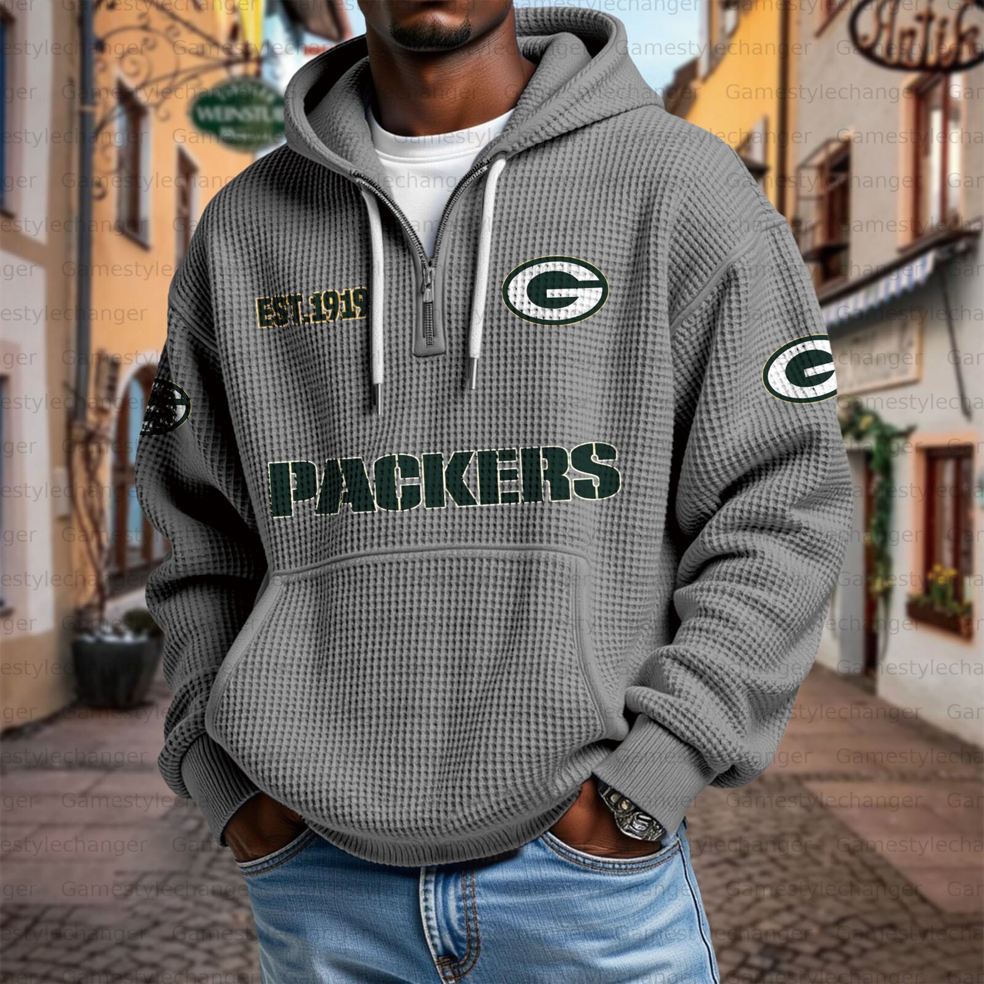 Unisex "Green Bay Packers" Graphic Streetwear Vintage Waffle Fabric hoodie