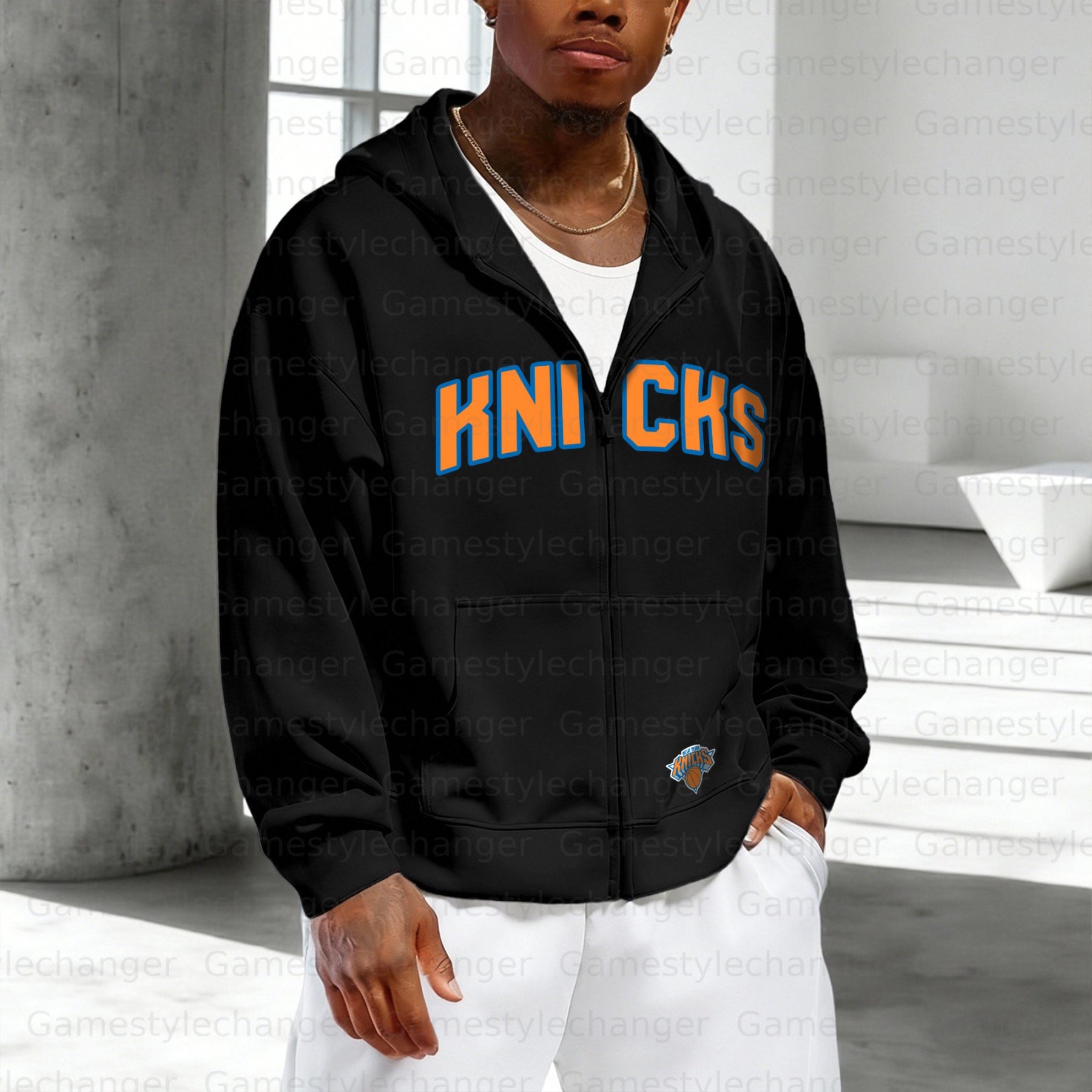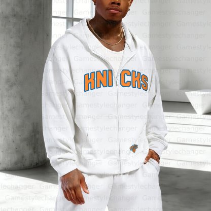 Unisex "New York Knicks" Graphic Streetwear Vintage Zipper Cardigan Hoodie