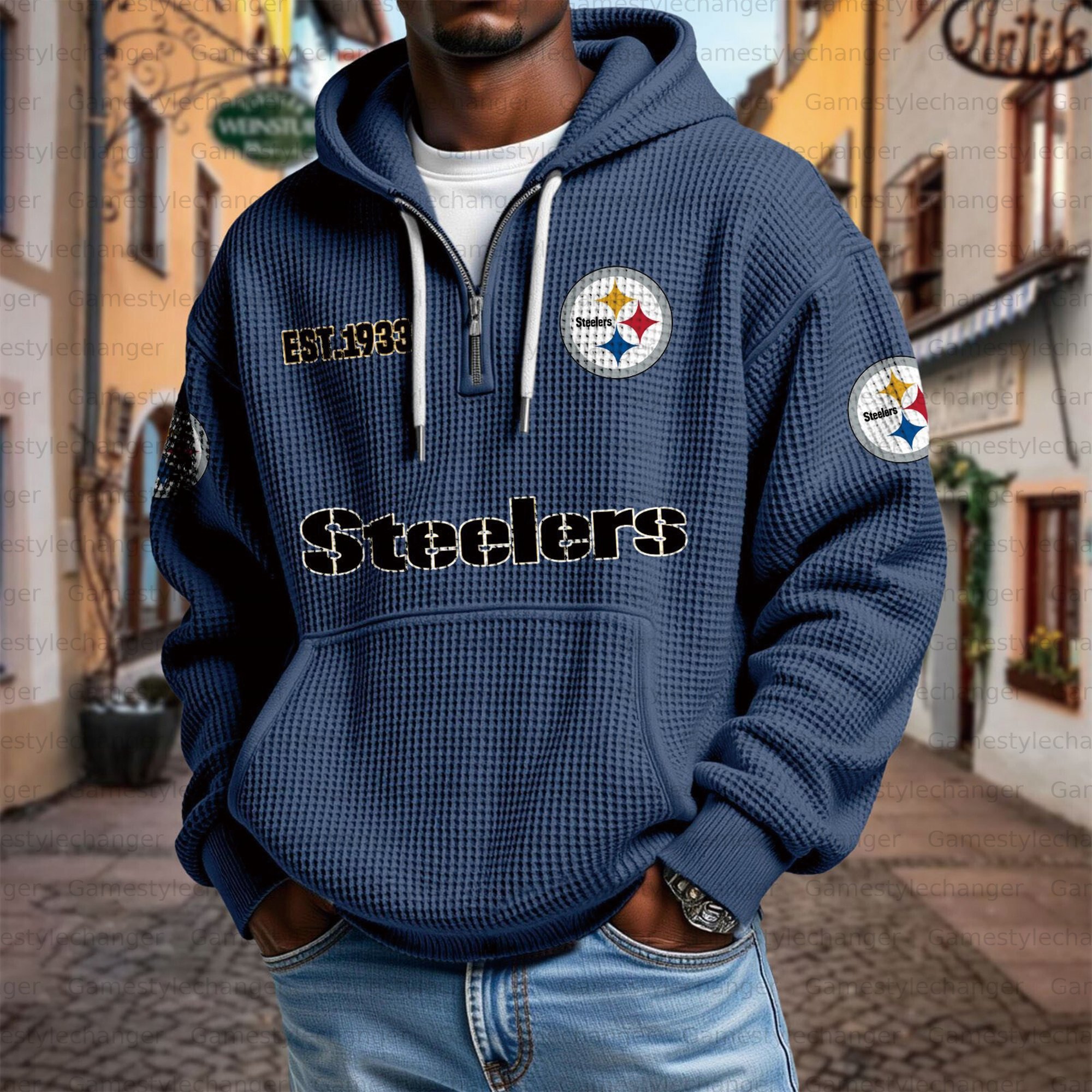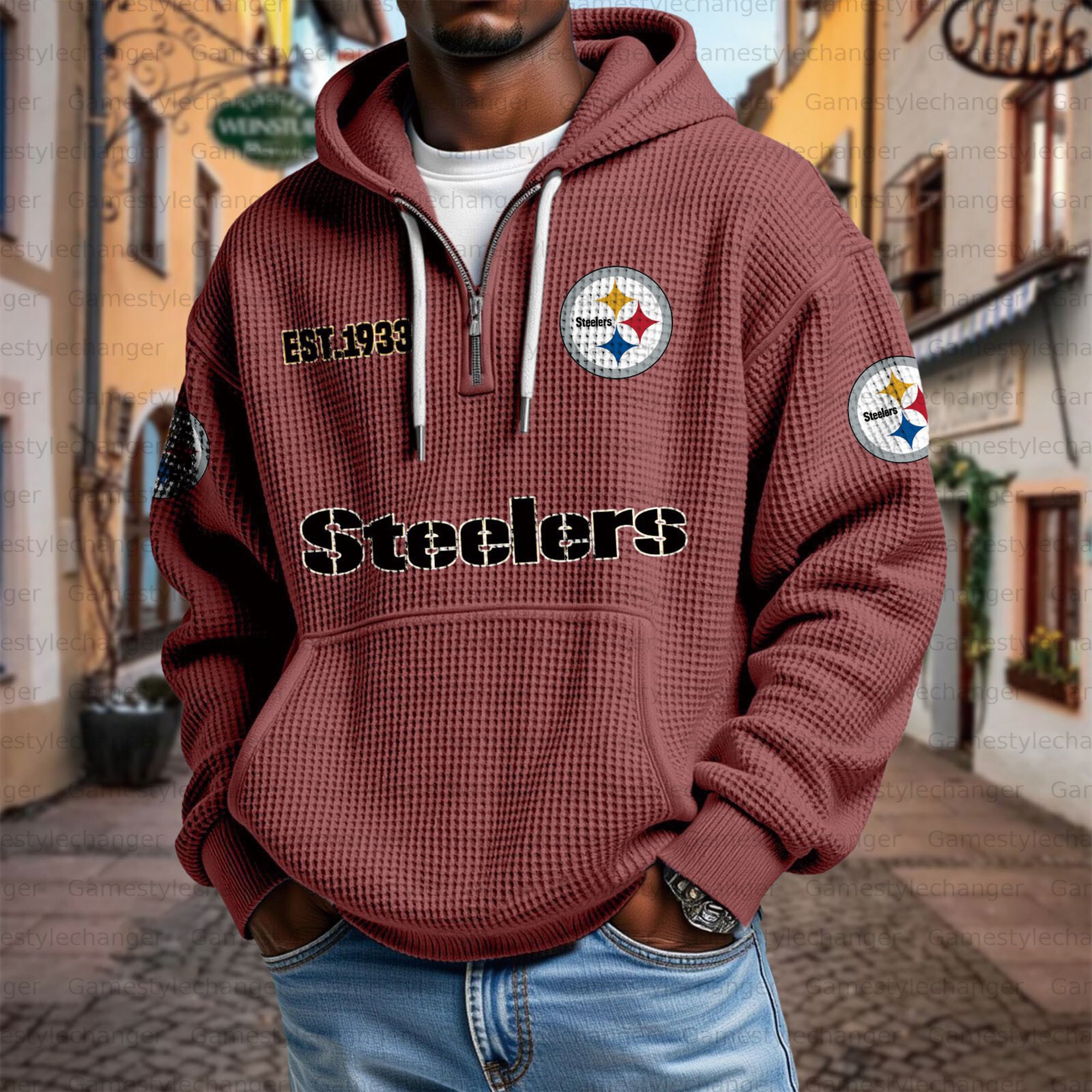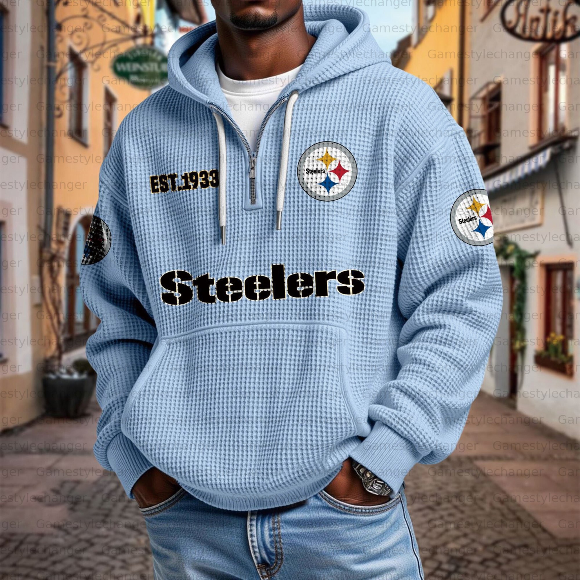 Unisex "Pittsburgh Steelers" Graphic Streetwear Vintage Waffle Fabric hoodie