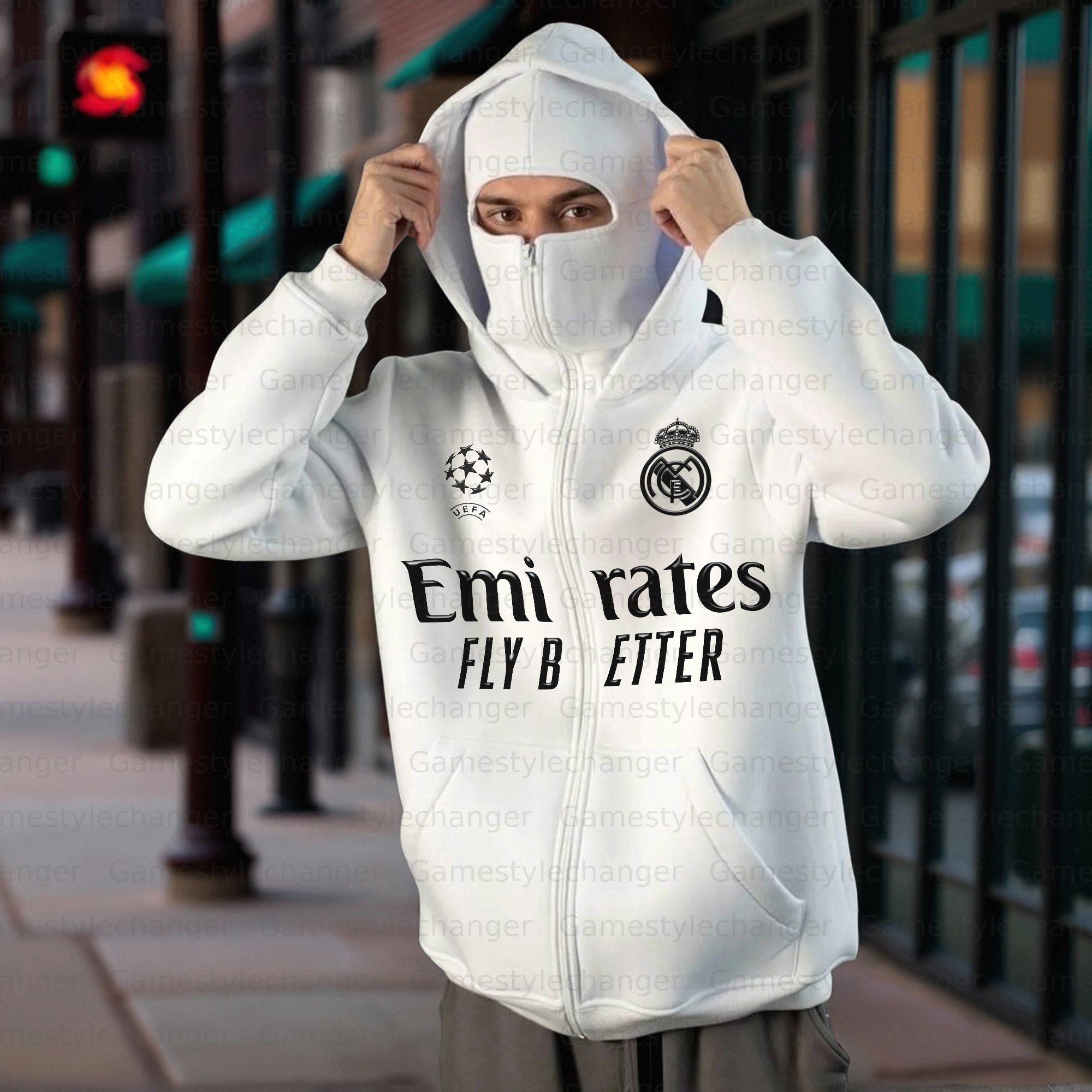 Unisex "Real Madrid” Double-layer Hooded Zip-up Sweatshirt
