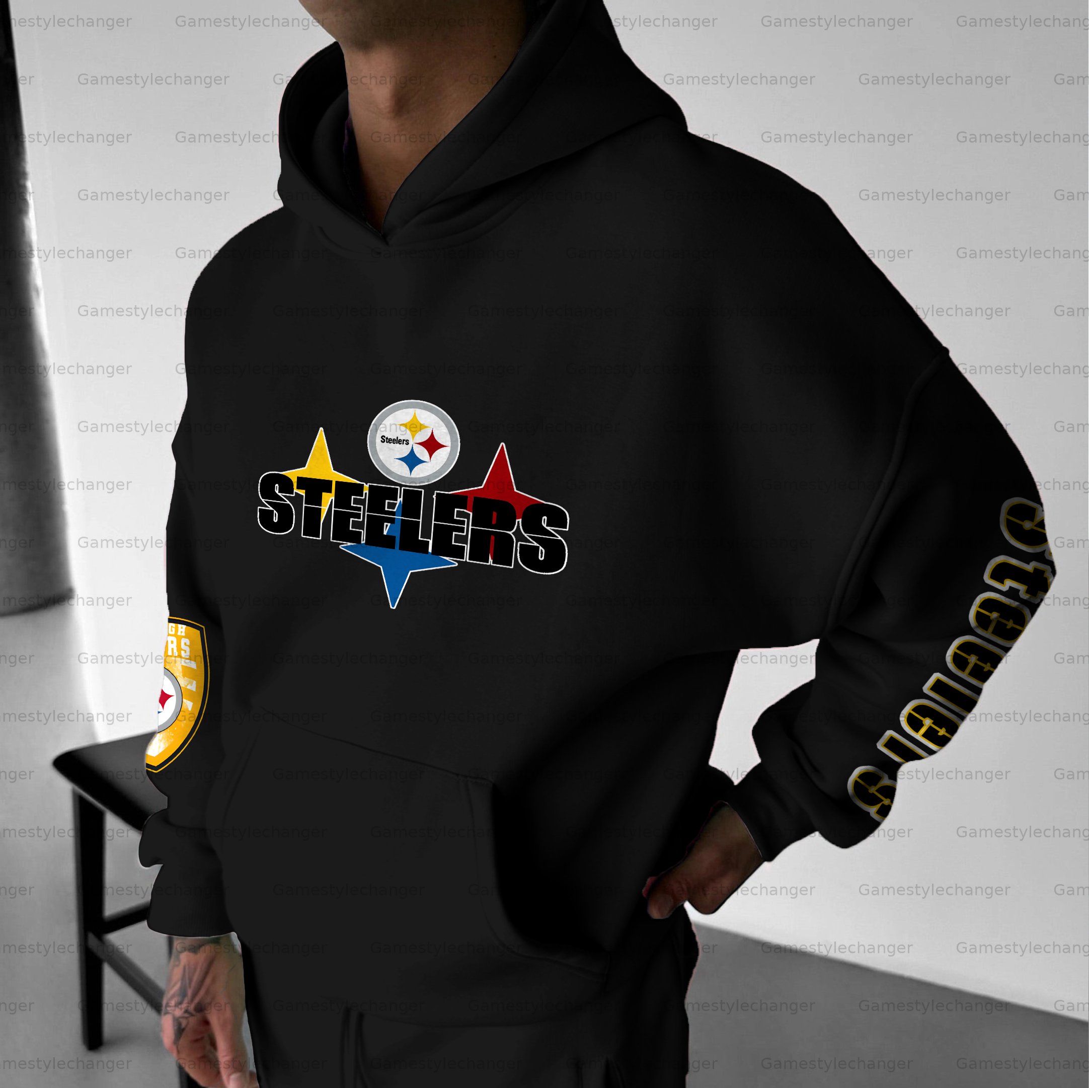 Pittsburgh Steelers UNISEX RUGBY CHAMPIONSHIP TEAM LOGO PRINT OVERSIZED CASUAL HOODIE